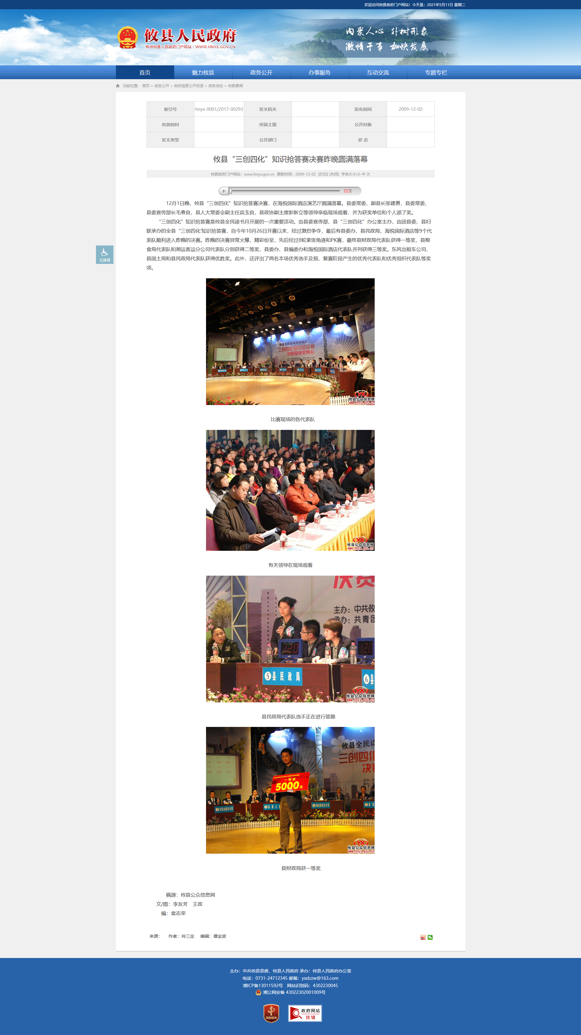 “三创四化”知识抢答赛是攸县全民读书月开展的一次重要活动。由县委宣传部、县“三创四化”办公室主办,由团县委、县妇联承办的全县“三创四化'知识抢答赛,自今年10月26日开赛以来,经过激烈争夺,最后有县委办、县民政局、海悦国际酒店等9个代表队顺利进入昨晚的决赛。昨晚的决赛异常火爆,精彩纷呈,先后经过8轮紧张角逐和PK赛,最终县财政局代表队获得一等奖,县粮食局代表队和湘运客运分公司代表队分别获得二等奖,县委办、县编委办和海悦国际酒店代表队并列获得三等奖。东风出租车公司、县国土局和县民政局代表队获得优胜奖。此外,还评出了两名本场优秀选手及预、复赛阶段产生的优秀代表队和优秀组织代表队等奖项。