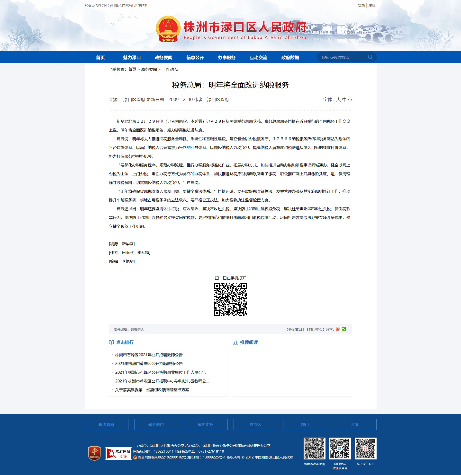 时间:2009-12-30 00:00:00 来源: 株洲市渌口区人民政府 来源截图