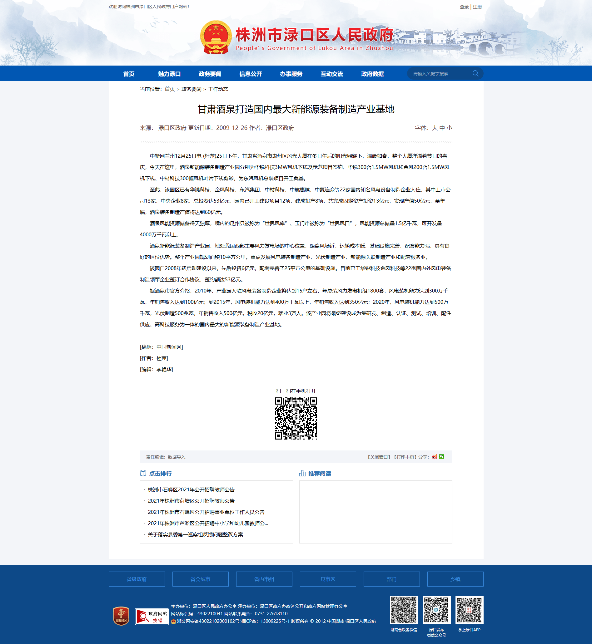 时间:2009-12-26 00:00:00 来源: 株洲市渌口区人民政府 来源截图