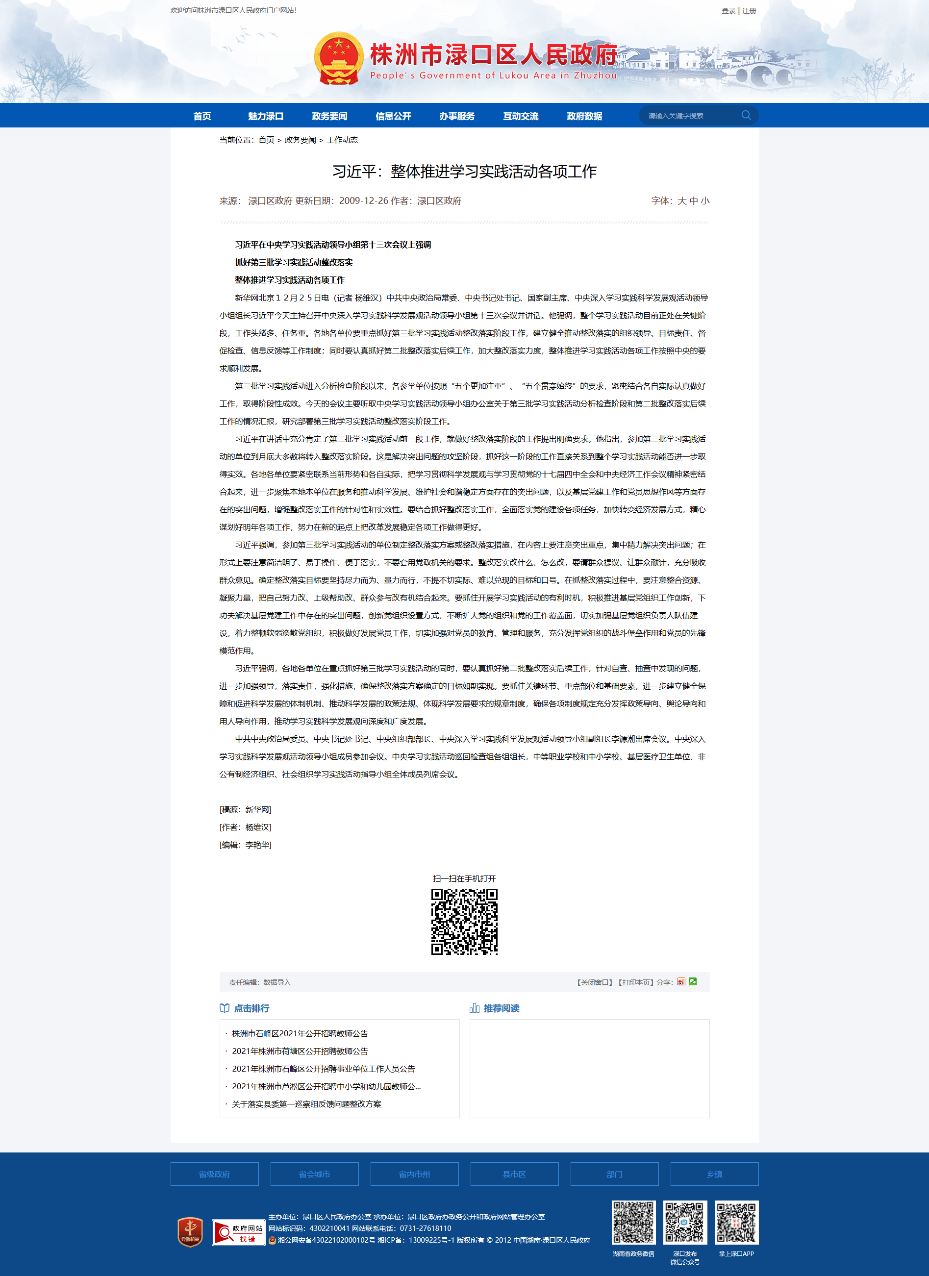 时间:2009-12-26 00:00:00 来源: 株洲市渌口区人民政府 来源截图