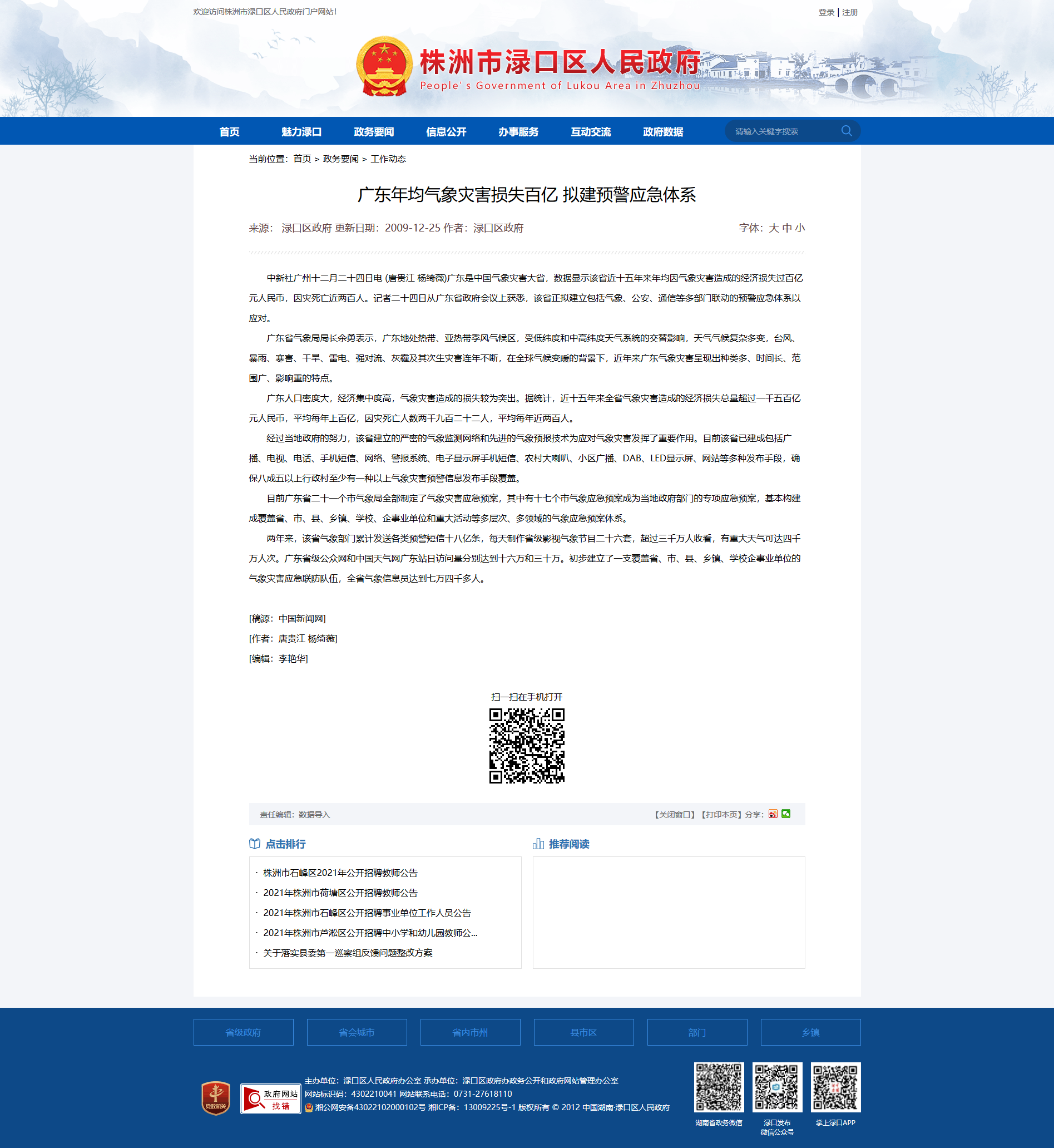 时间:2009-12-25 00:00:00 来源: 株洲市渌口区人民政府 来源截图