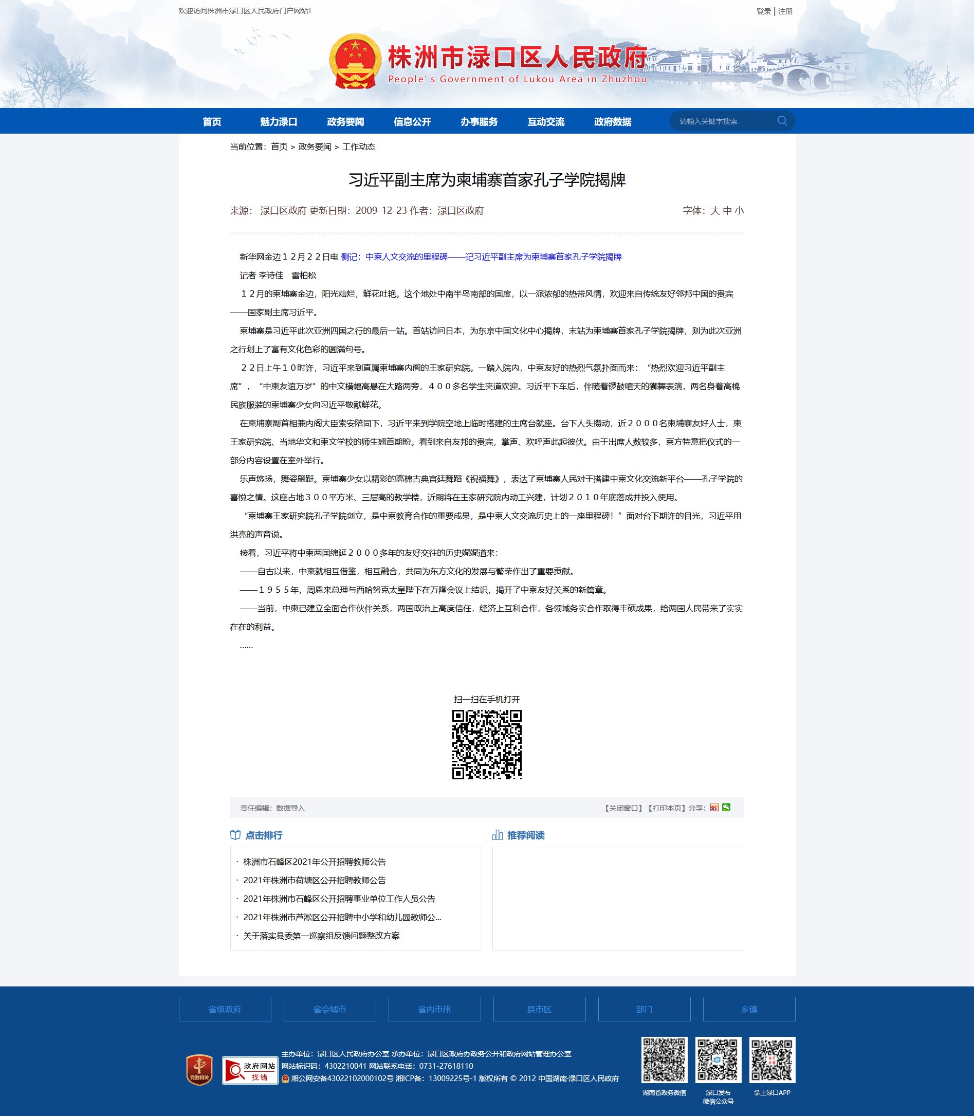 时间:2009-12-23 00:00:00 来源: 株洲市渌口区人民政府 来源截图