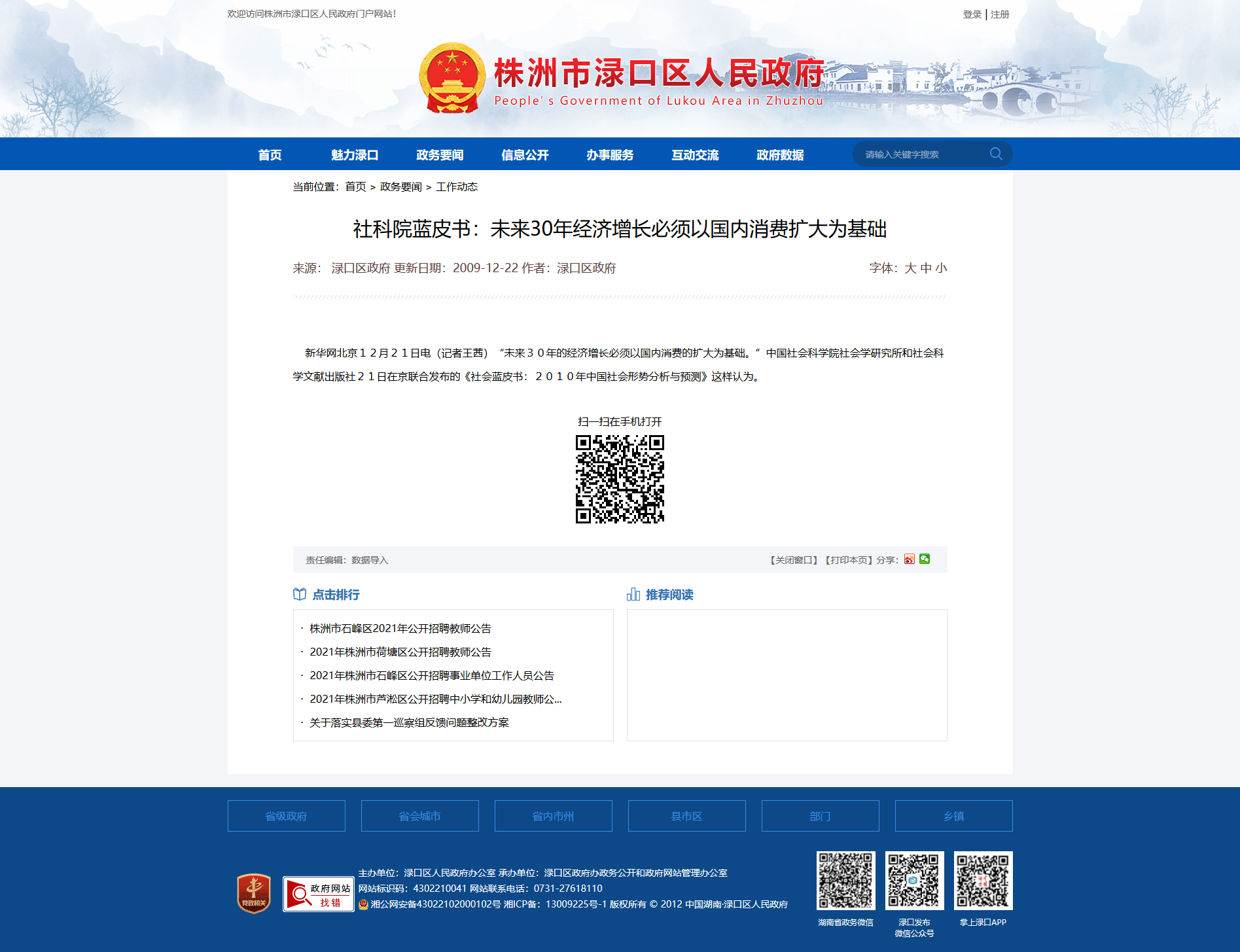 时间:2009-12-22 00:00:00 来源: 株洲市渌口区人民政府 来源截图