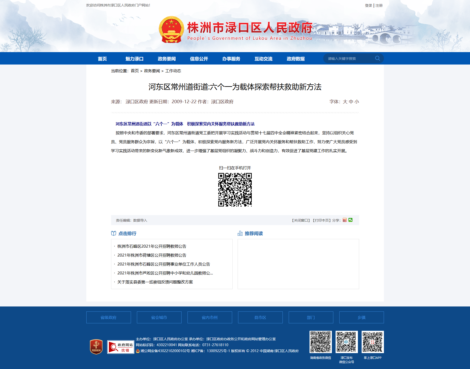 时间:2009-12-22 00:00:00 来源: 株洲市渌口区人民政府 来源截图
