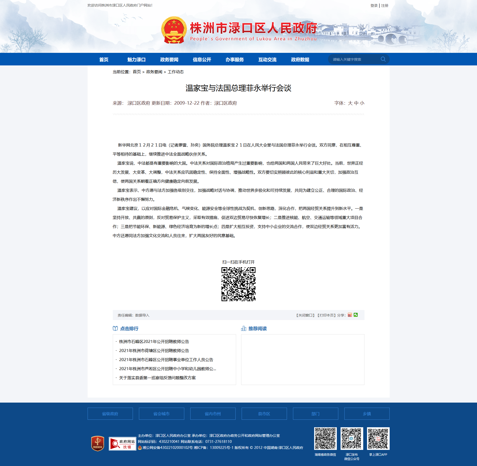 时间:2009-12-22 00:00:00 来源: 株洲市渌口区人民政府 来源截图