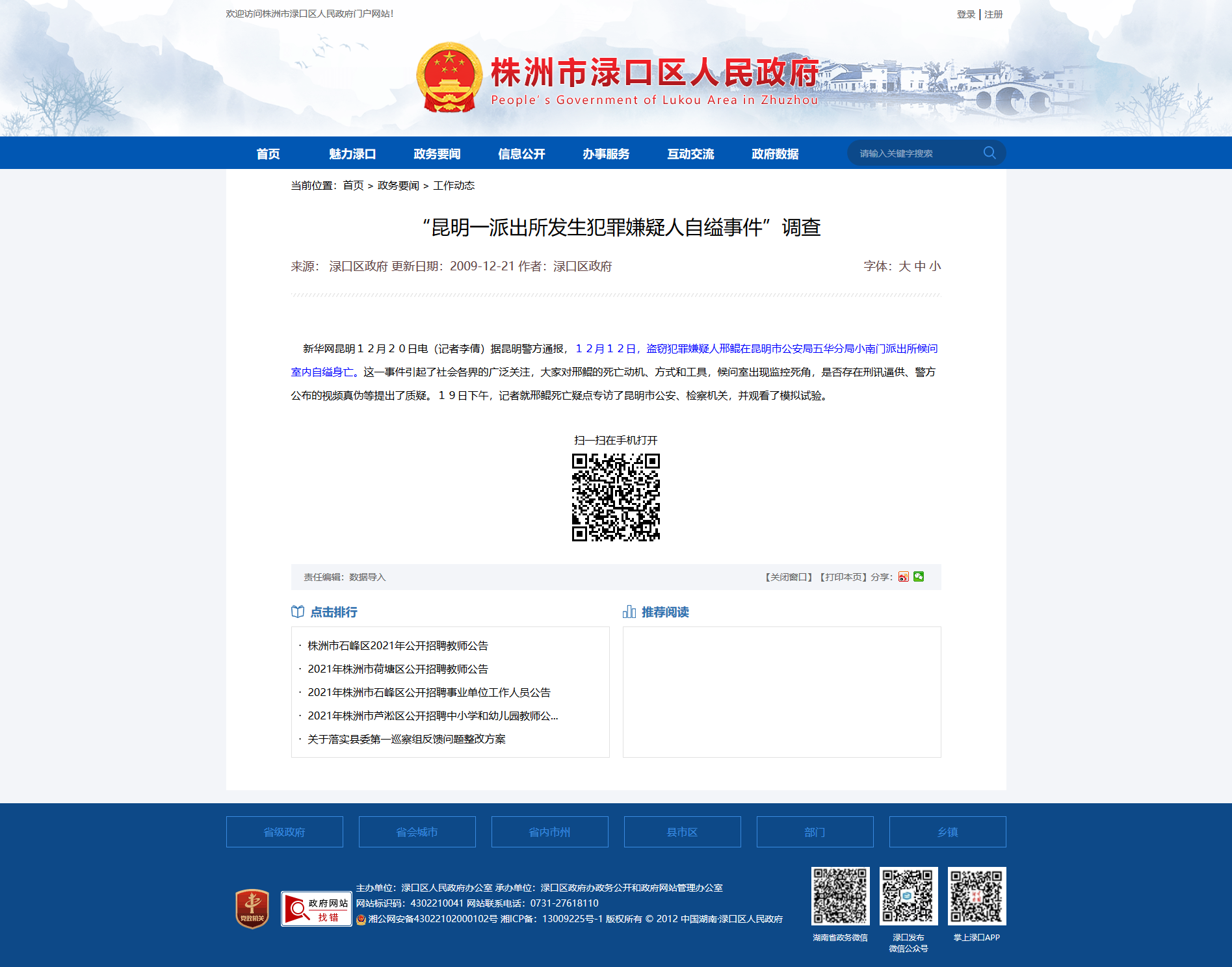 时间:2009-12-21 00:00:00 来源: 株洲市渌口区人民政府 来源截图