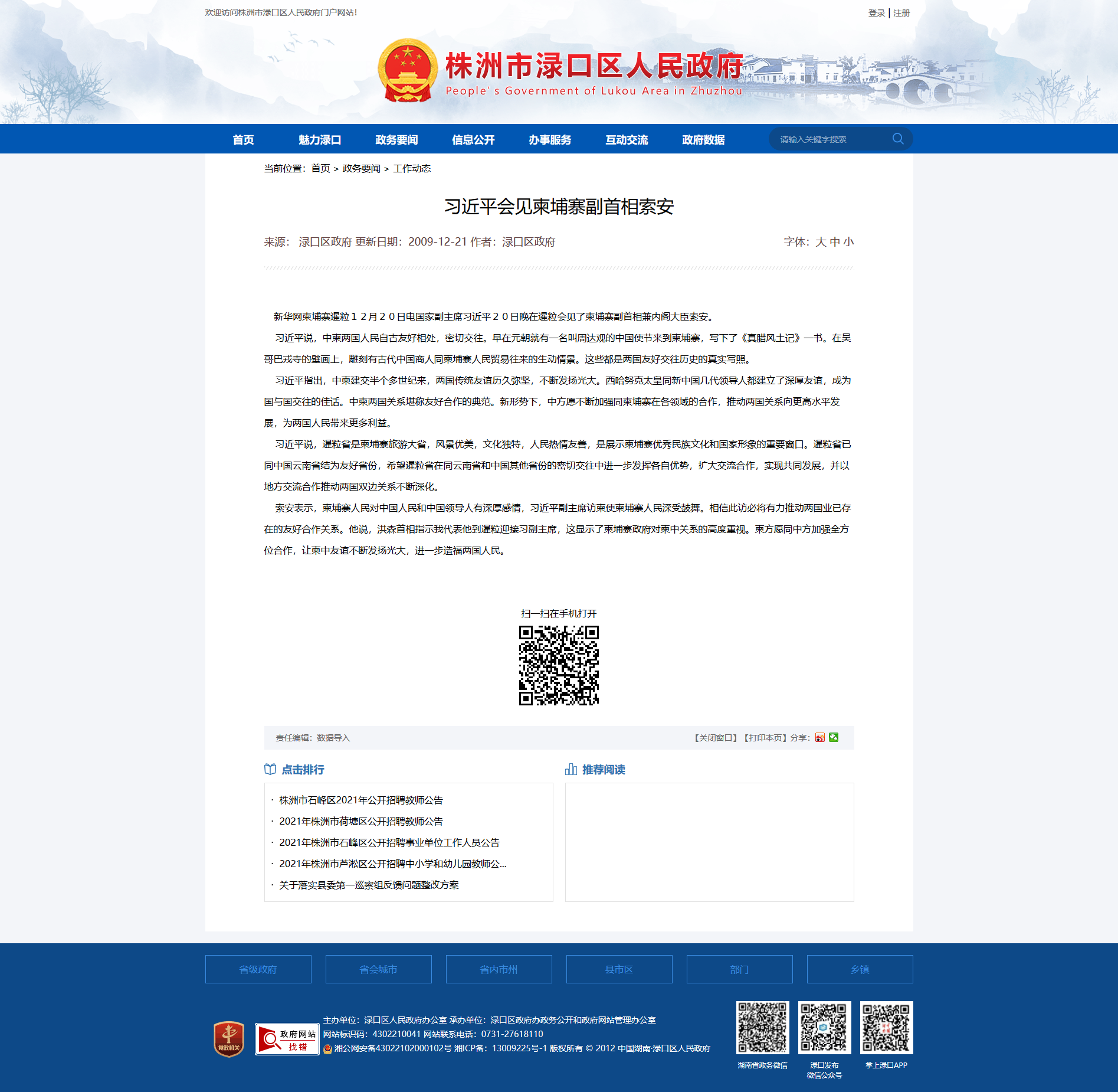 时间:2009-12-21 00:00:00 来源: 株洲市渌口区人民政府 来源截图
