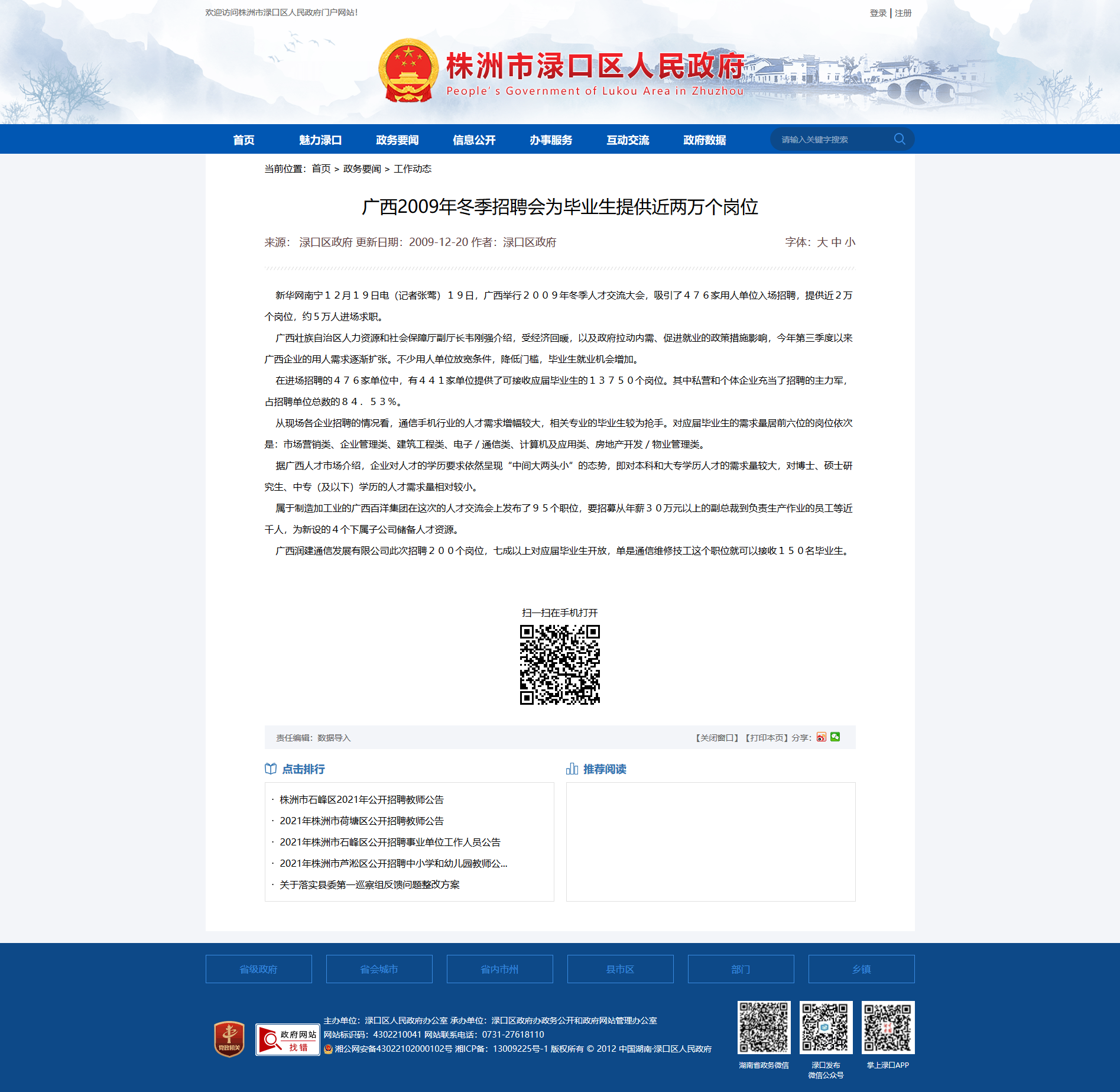 时间:2009-12-20 00:00:00 来源: 株洲市渌口区人民政府 来源截图