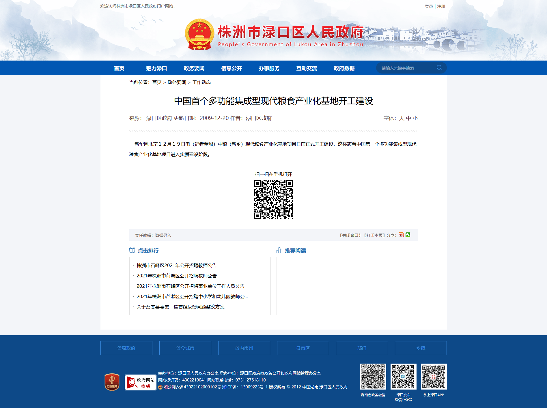 时间:2009-12-20 00:00:00 来源: 株洲市渌口区人民政府 来源截图