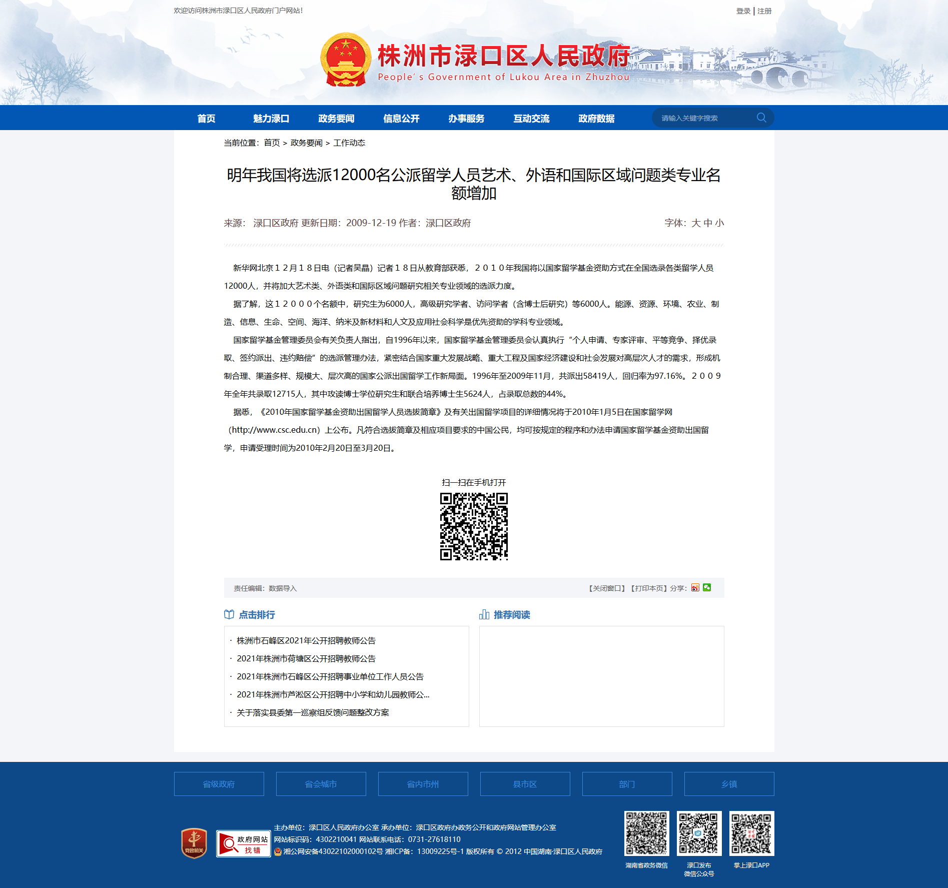 时间:2009-12-19 00:00:00 来源: 株洲市渌口区人民政府 来源截图