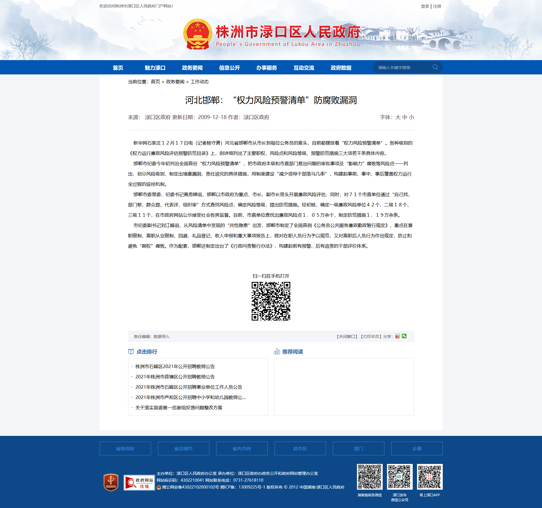 时间:2009-12-18 00:00:00 来源: 株洲市渌口区人民政府 来源截图