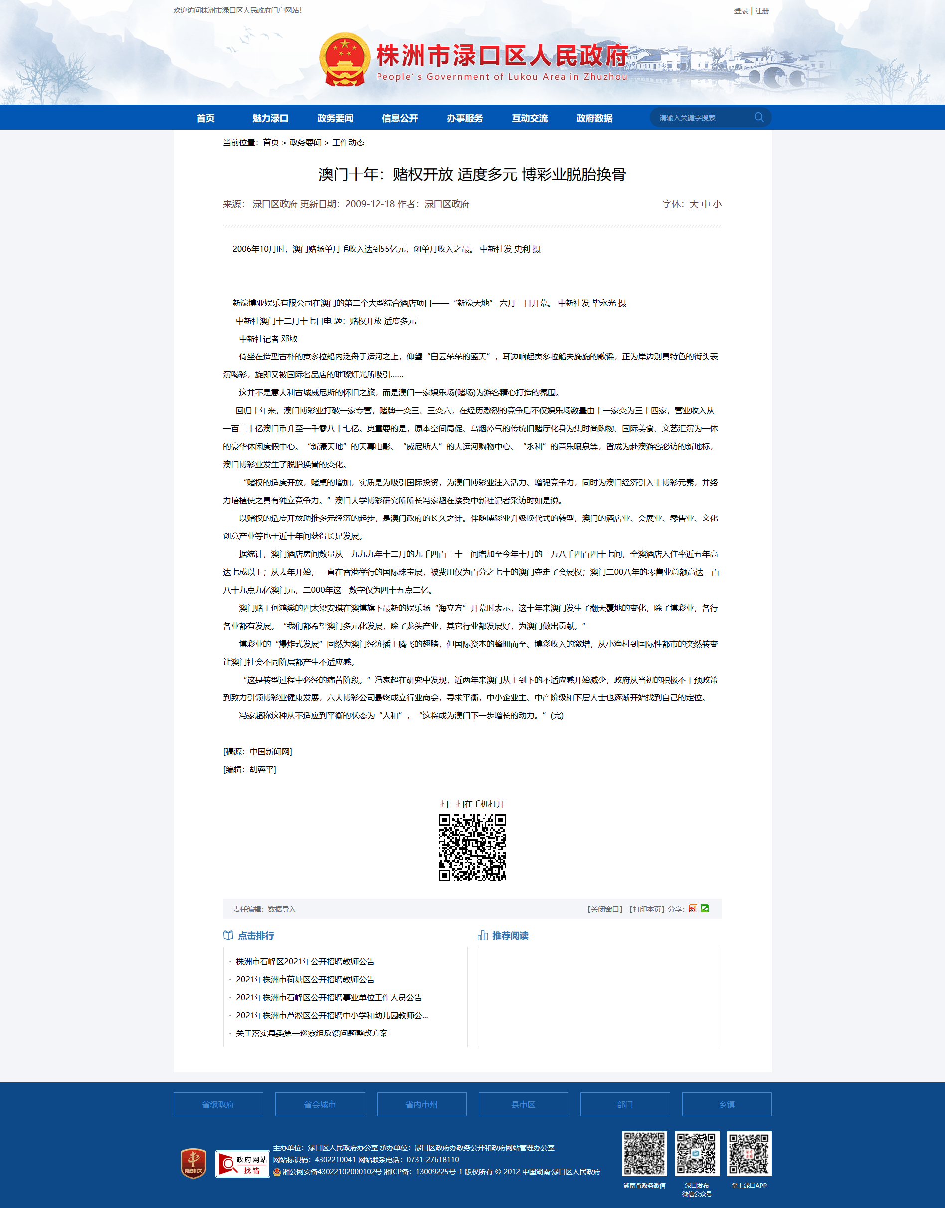 时间:2009-12-18 00:00:00 来源: 株洲市渌口区人民政府 来源截图