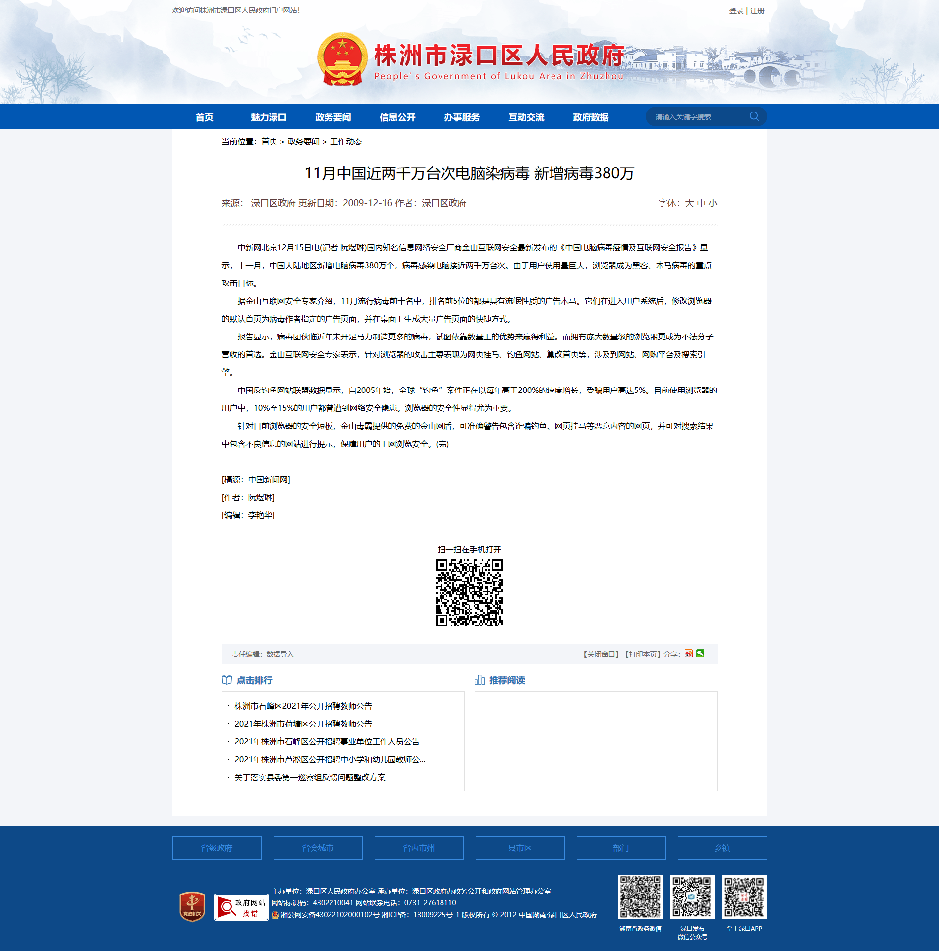 时间:2009-12-16 00:00:00 来源: 株洲市渌口区人民政府 来源截图