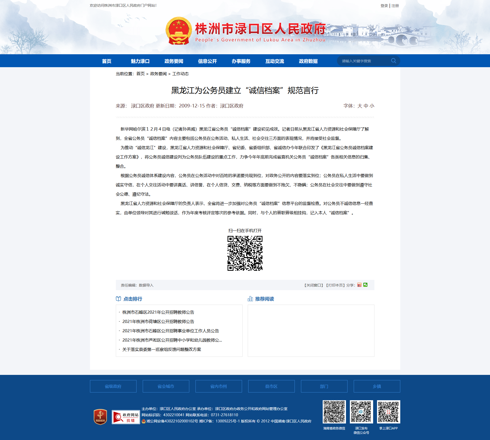 时间:2009-12-15 00:00:00 来源: 株洲市渌口区人民政府 来源截图
