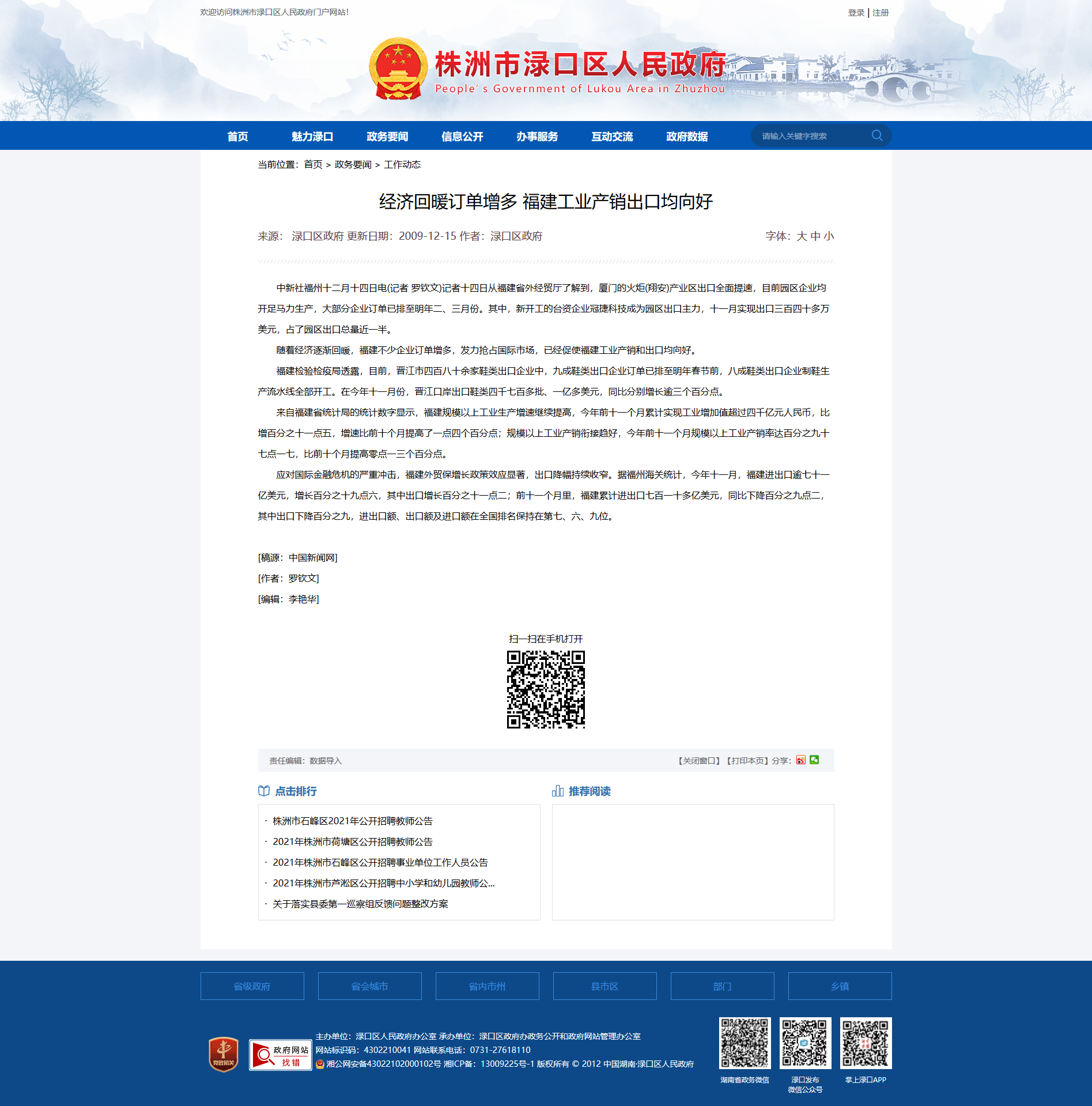 时间:2009-12-15 00:00:00 来源: 株洲市渌口区人民政府 来源截图