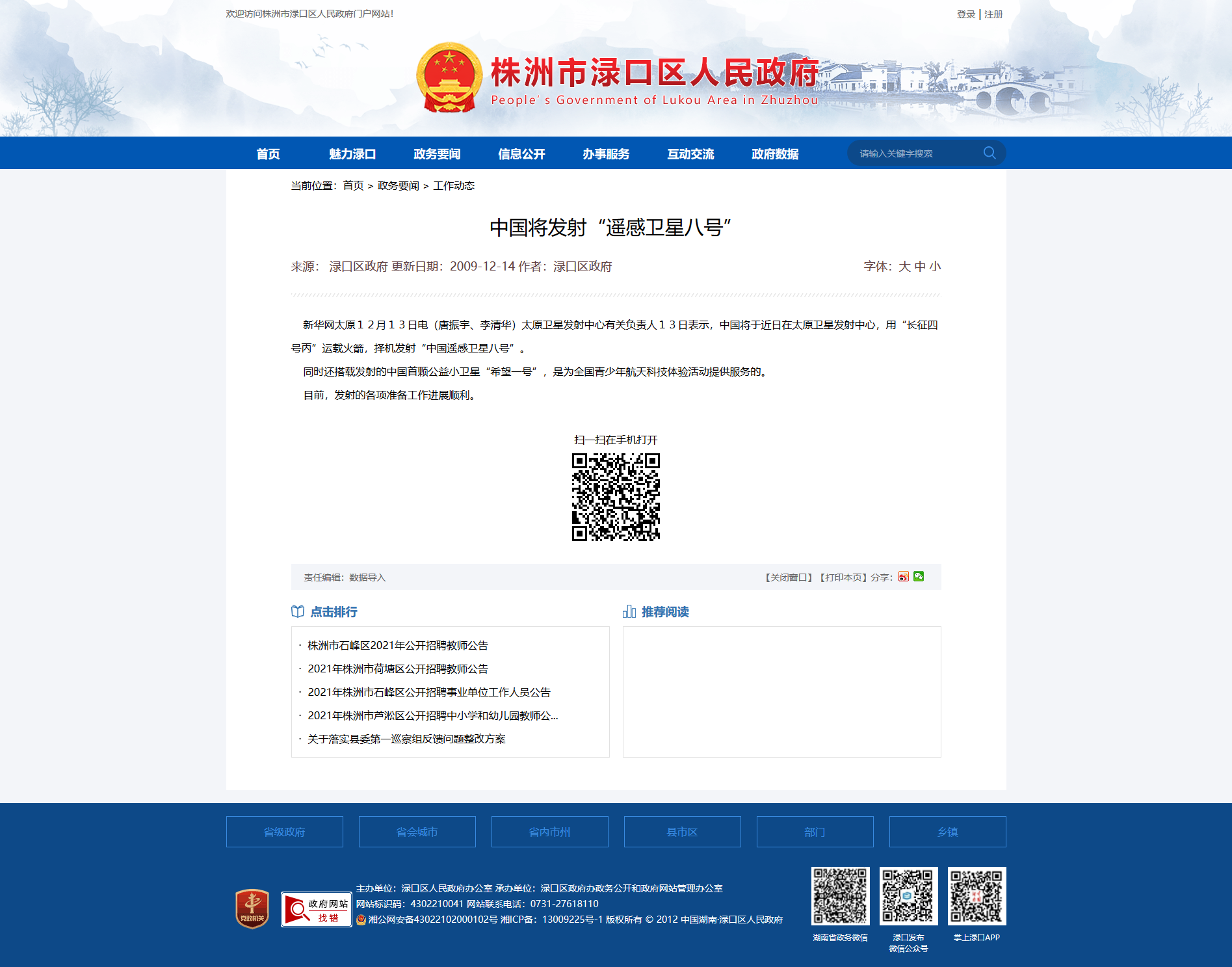 时间:2009-12-14 00:00:00 来源: 株洲市渌口区人民政府 来源截图