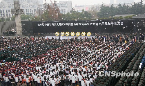 12月13日,“悼念侵华日军南京大屠杀30万同胞遇难72周年仪式暨南京国际和平日集会”在南京大屠杀遇难同胞纪念馆集会广场举行,南京大屠杀幸存者、江苏省与南京市各有关部门、群众代表以及波兰、美国、日本友人等约5000人参加了悼念仪式。 中新社发 文宝 摄