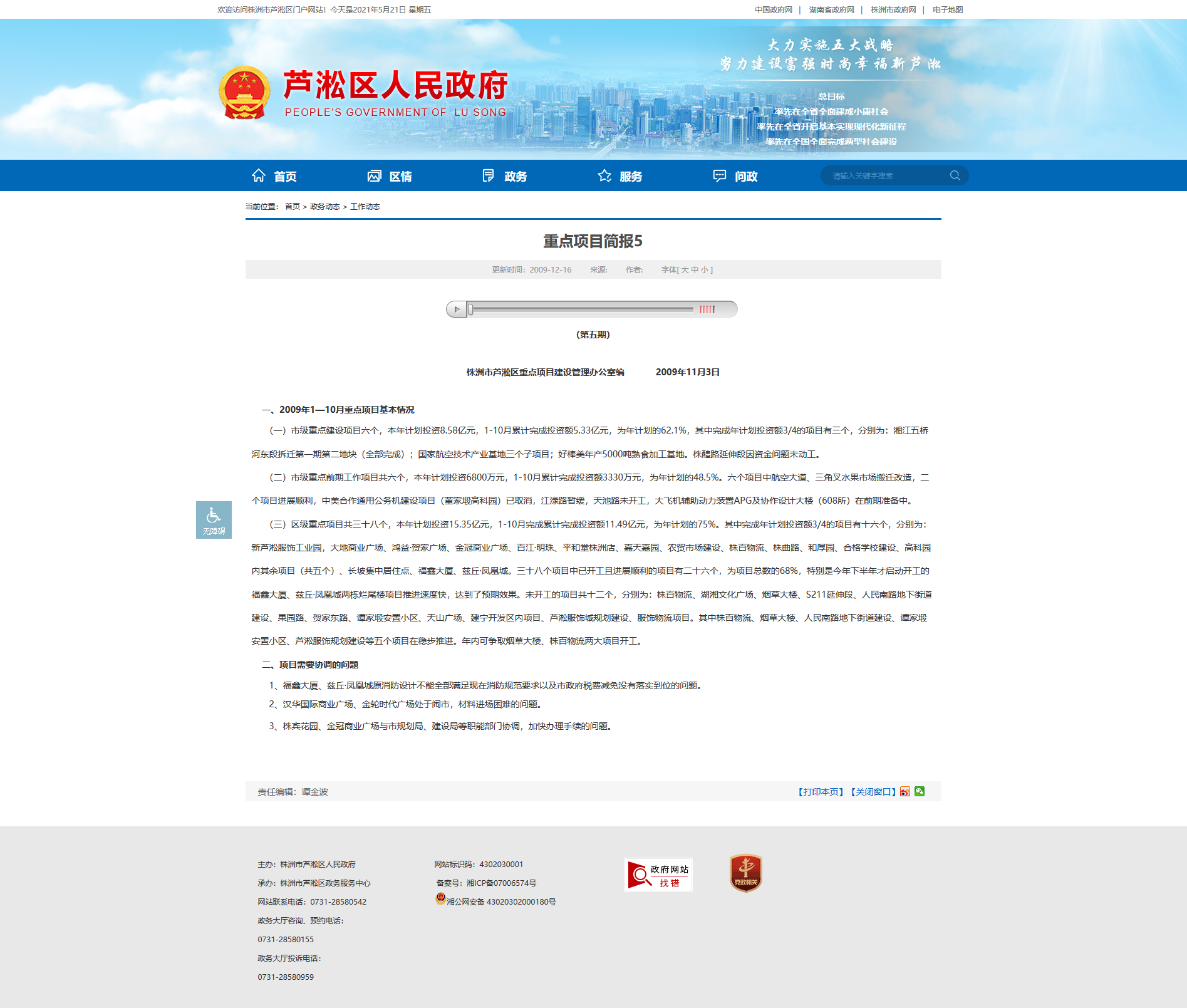 株洲市芦淞区重点项目建设管理办公室编 2009年11月3日