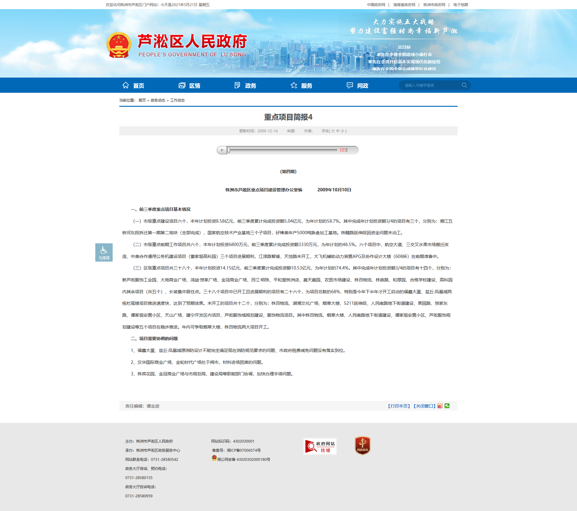 株洲市芦淞区重点项目建设管理办公室编 2009年10月10日