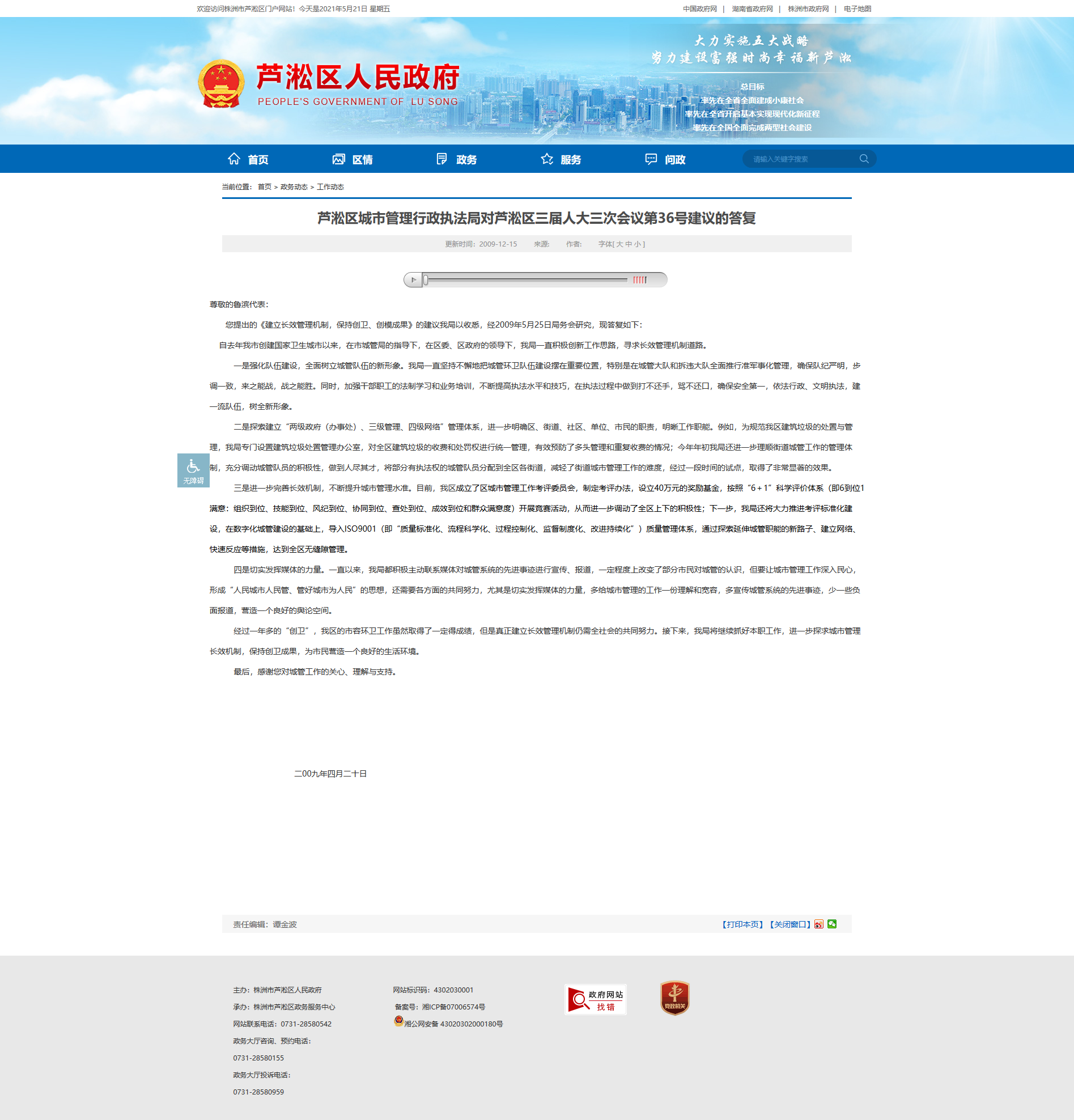 芦淞区城市管理行政执法局对芦淞区三届人大三次会议第36号建议的答复