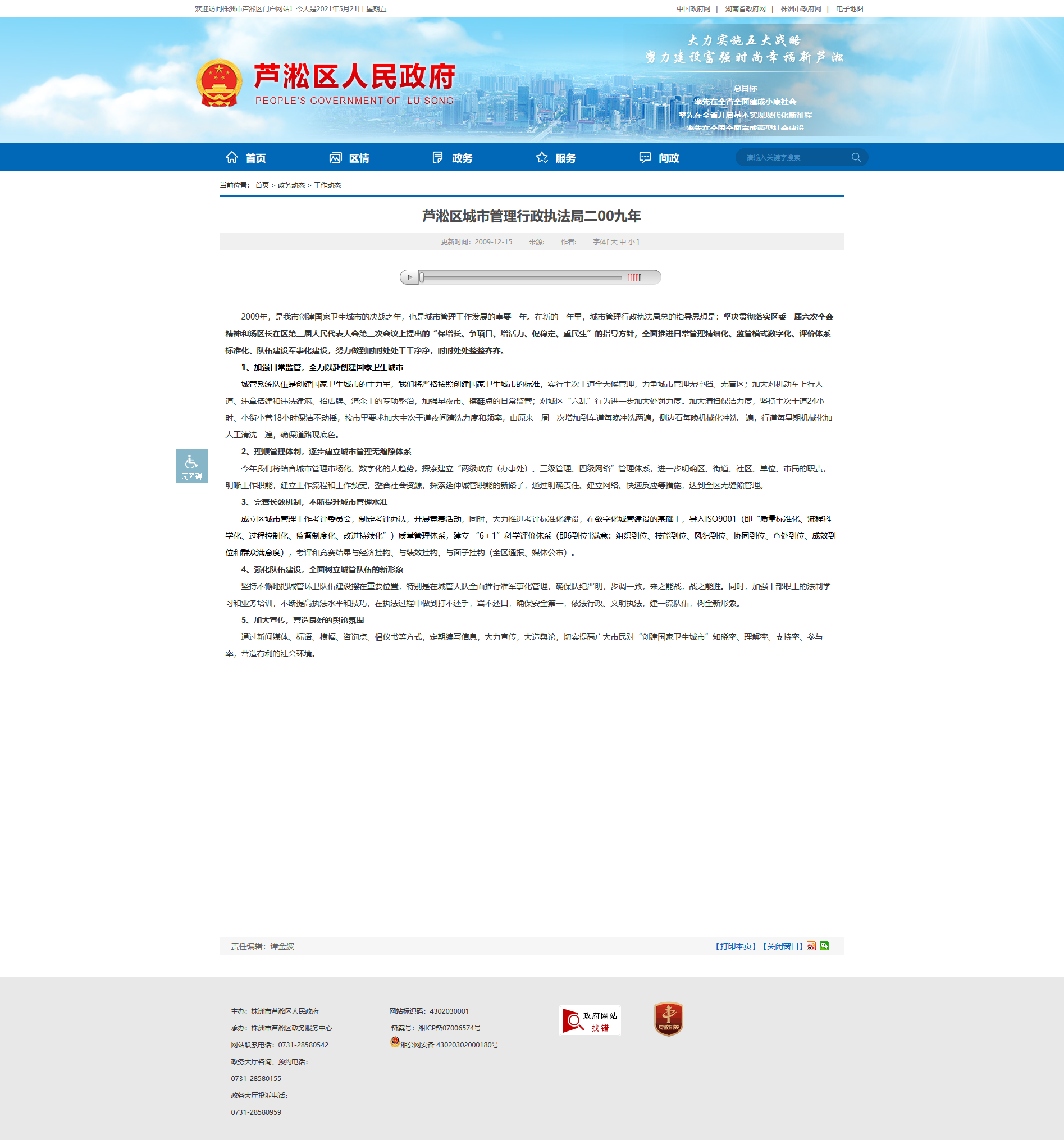 芦淞区城市管理行政执法局二00九年
