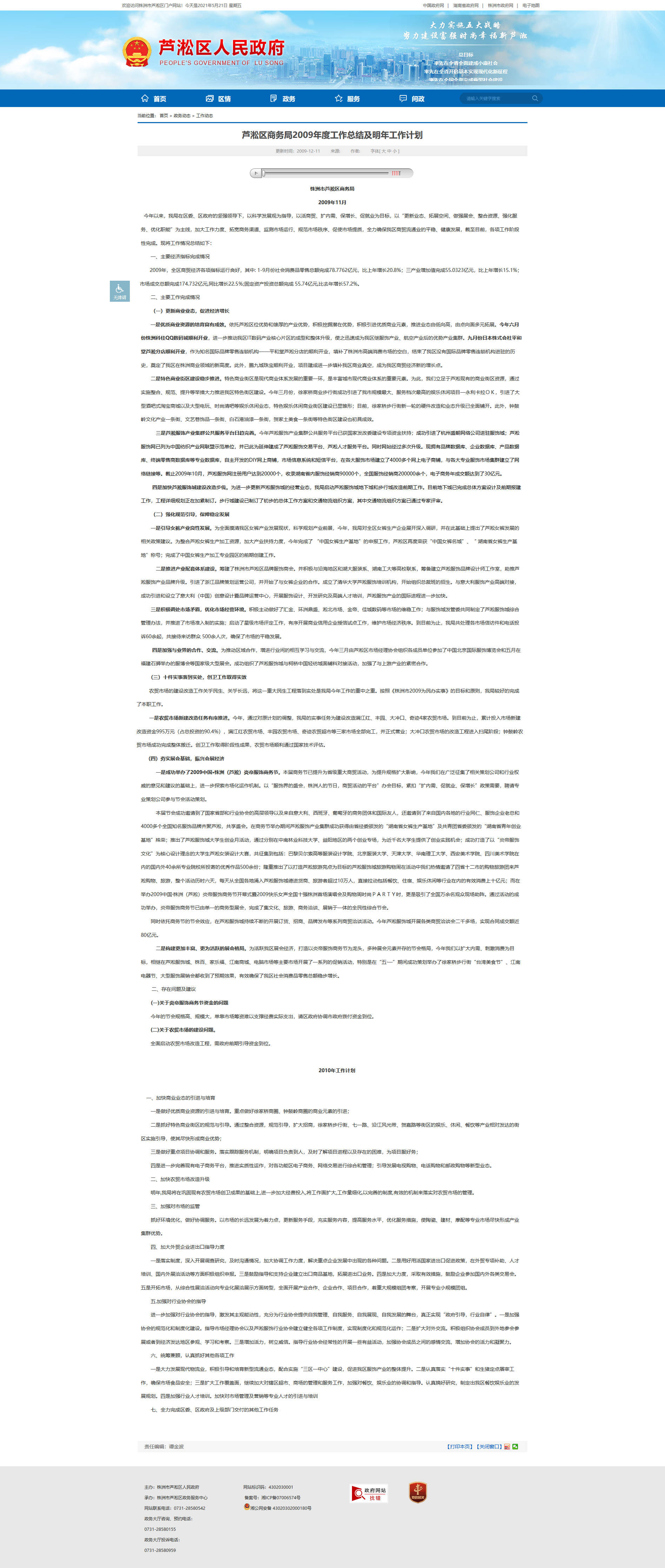 芦淞区商务局2009年度工作总结及明年工作计划