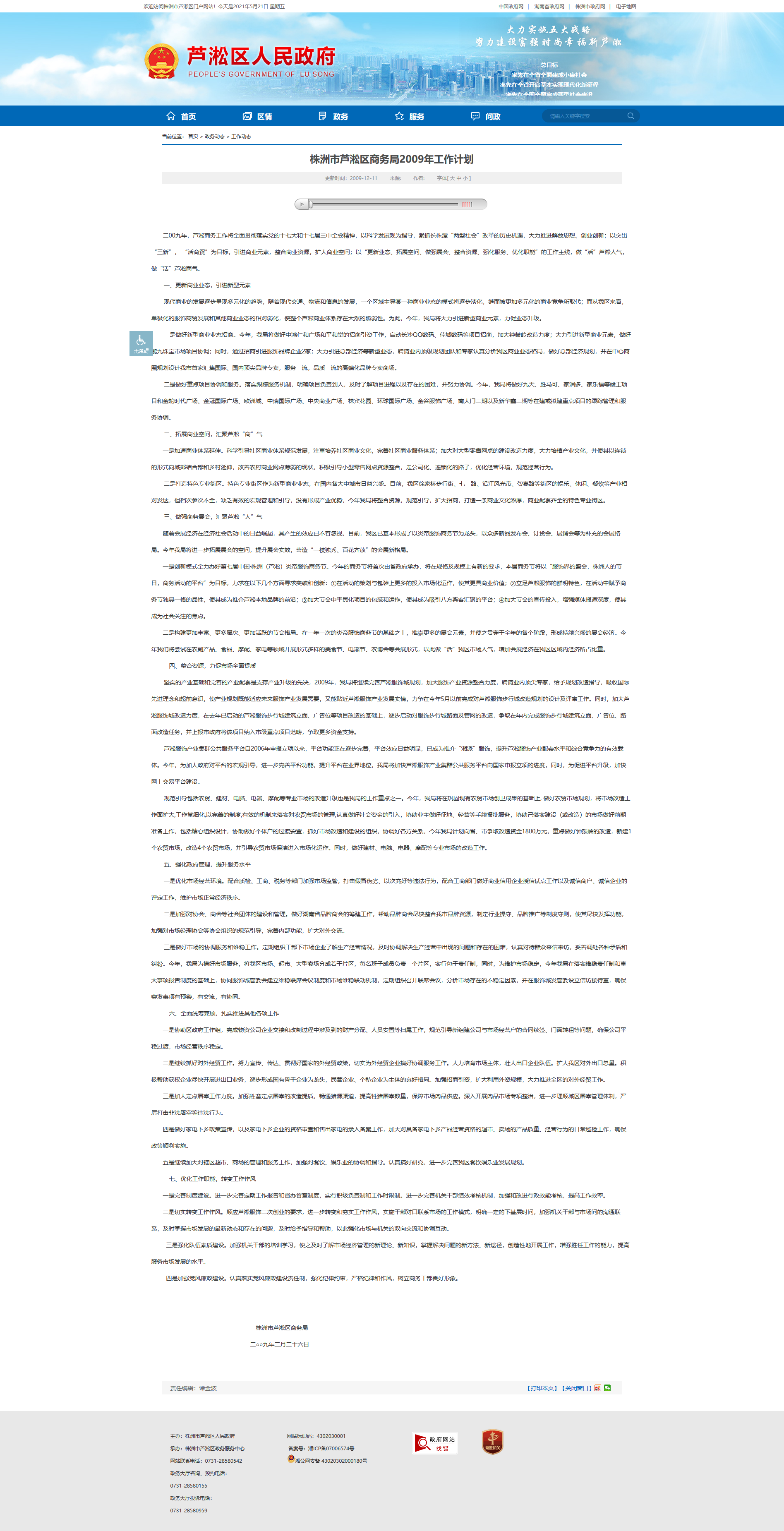 株洲市芦淞区商务局2009年工作计划