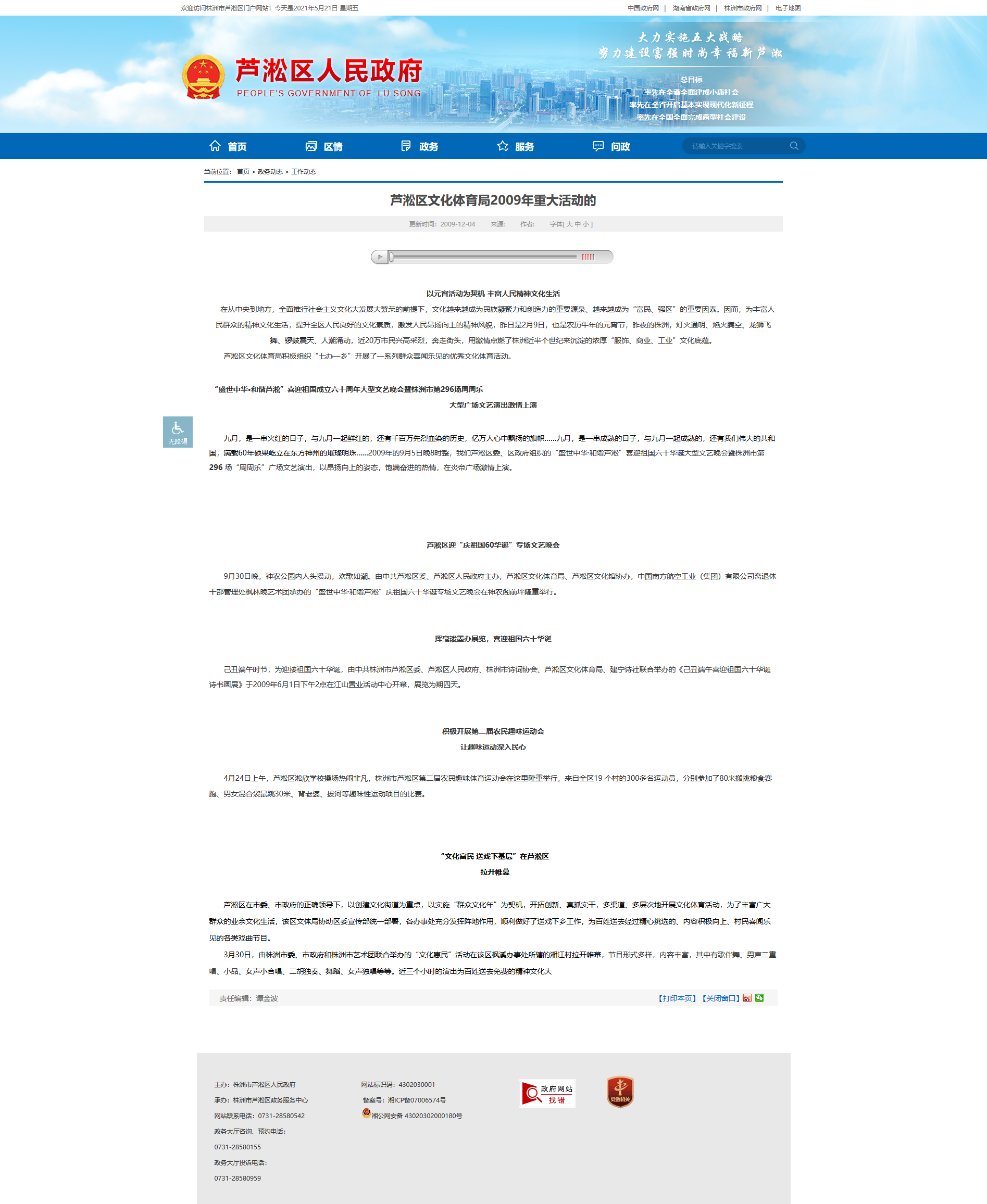 芦淞区在市委、市政府的正确领导下,以创建文化街道为重点,以实施“群众文化年”为契机,开拓创新、真抓实干,多渠道、多层次地开展文化体育活动,为了丰富广大群众的业余文化生活,该区文体局协助区委宣传部统一部署,各办事处充分发挥阵地作用,顺利做好了送戏下乡工作,为百姓送去经过精心挑选的、内容积极向上、村民喜闻乐见的各类戏曲节目。3月30日,由株洲市委、市政府和株洲市艺术团联合举办的“文化惠民”活动在该区枫溪办事处所辖的湘江村拉开帷幕,节目形式多样,内容丰富,其中有歌伴舞、男声二重唱、小品、女声小合唱、二胡独奏、舞蹈、女声独唱等等。近三个小时的演出为百姓送去免费的精神文化大