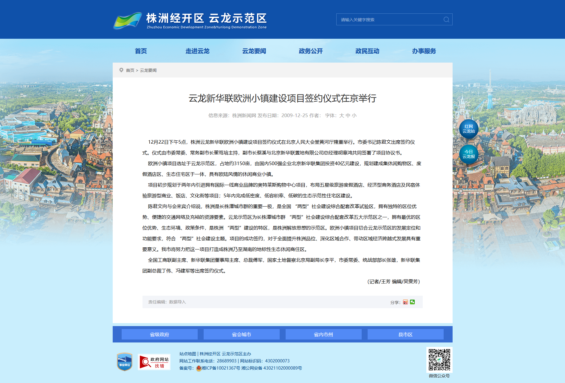 12月22日下午5点,株洲云龙新华联欧洲小镇建设项目签约仪式在北京人民大会堂黄河厅隆重举行。市委书记陈君文出席签约仪式。仪式由市委常委、常务副市长翟笃培主持,副市长蔡溪与北京新华联置地有限公司总经理胡章鸿共同签署了项目协议书。
