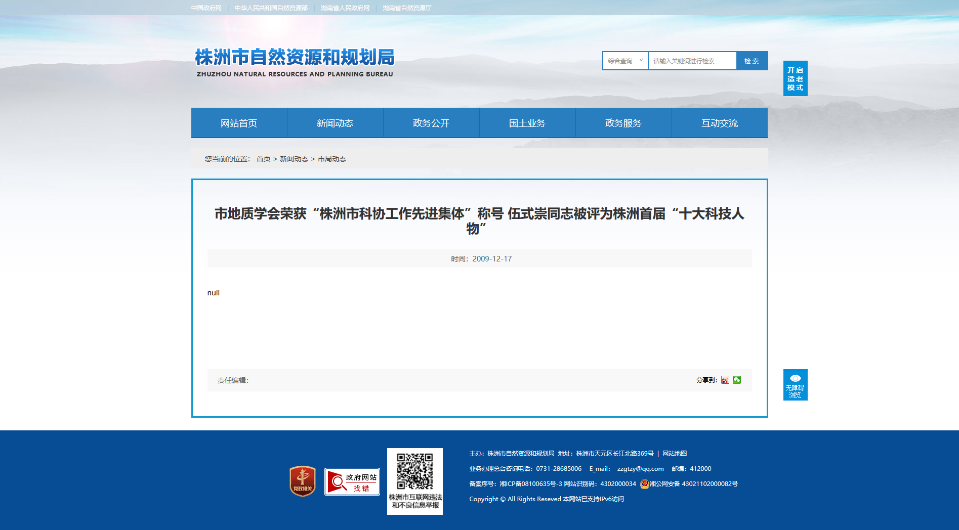 市地质学会荣获“株洲市科协工作先进集体”称号 伍式崇同志被评为株洲首届“十大科技人物”