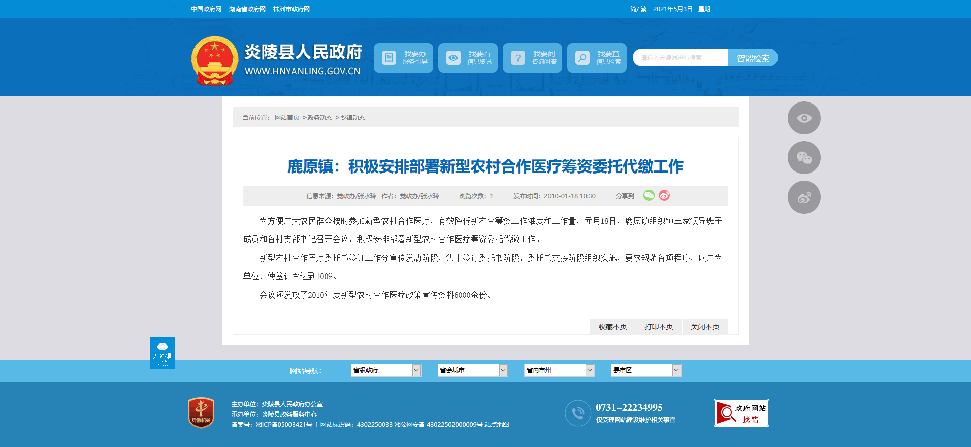 时间:2010-01-18 10:30:00 来源: 炎陵县人民政府 来源截图