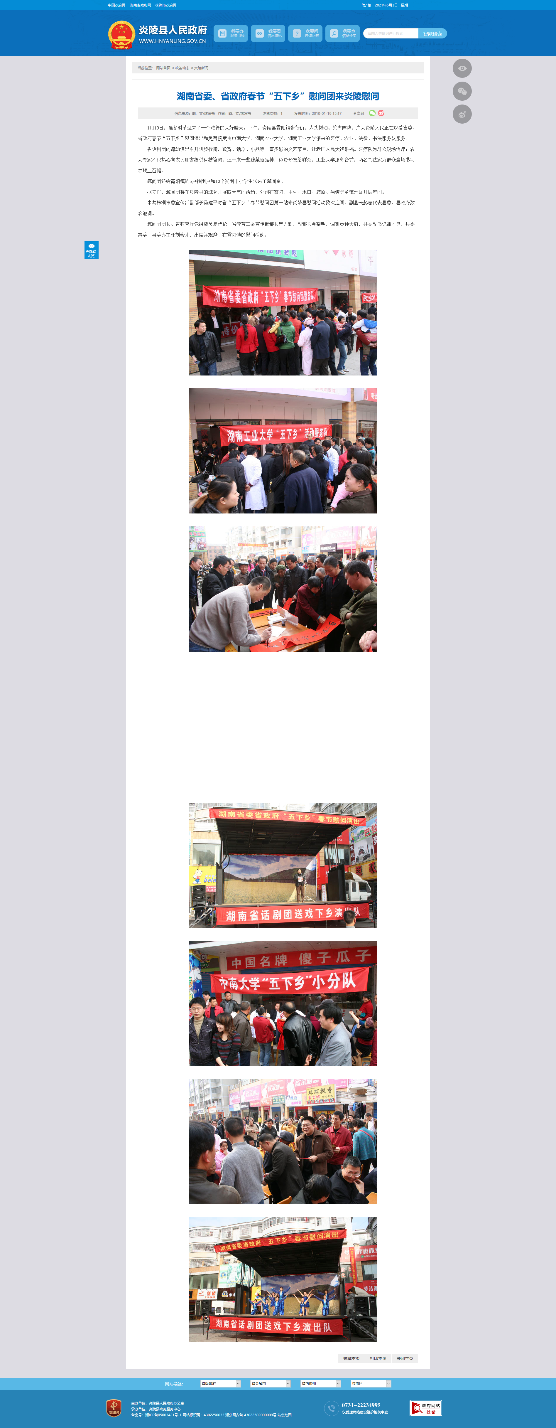 据安排,慰问团将在炎陵县的城乡开展四天慰问活动,分别在霞阳、中村、水口、鹿原、沔渡等乡镇巡回开展慰问。