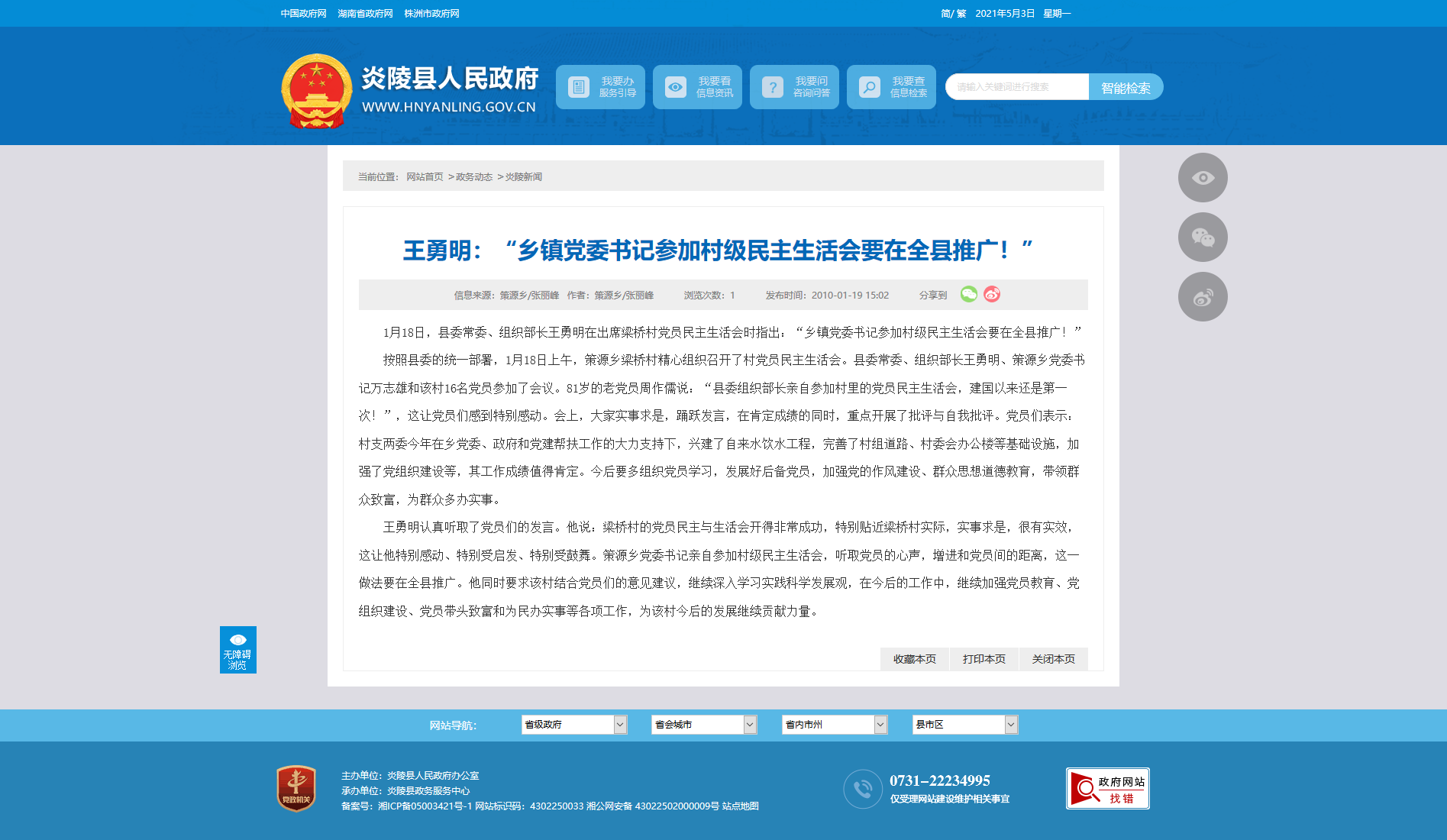 王勇明认真听取了党员们的发言。他说:梁桥村的党员民主与生活会开得非常成功,特别贴近梁桥村实际,实事求是,很有实效,这让他特别感动、特别受启发、特别受鼓舞。策源乡党委书记亲自参加村级民主生活会,听取党员的心声,增进和党员间的距离,这一做法要在全县推广。他同时要求该村结合党员们的意见建议,继续深入学习实践科学发展观,在今后的工作中,继续加强党员教育、党组织建设、党员带头致富和为民办实事等各项工作,为该村今后的发展继续贡献力量。