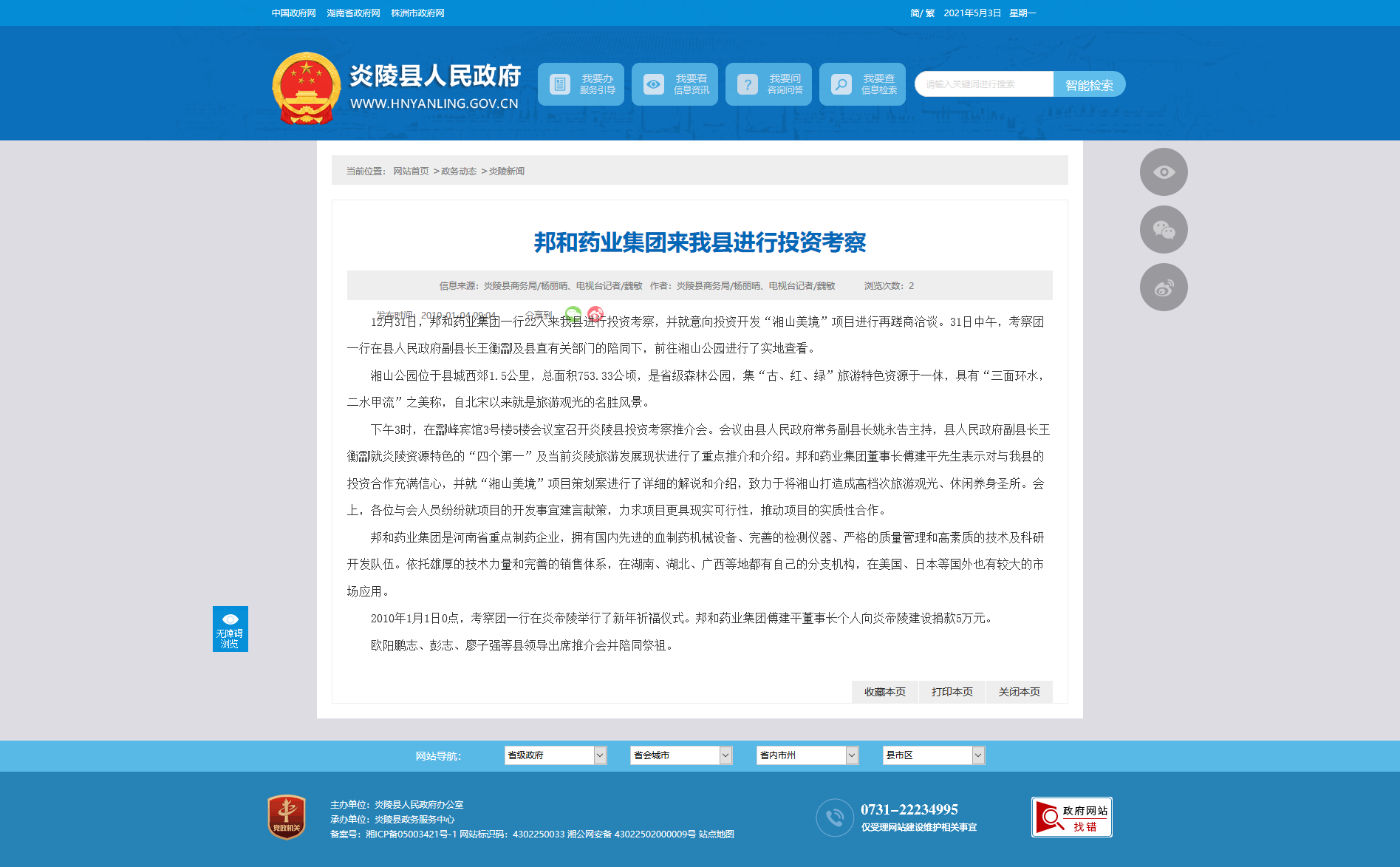 下午3时,在酃峰宾馆3号楼5楼会议室召开炎陵县投资考察推介会。会议由县人民政府常务副县长姚永告主持,县人民政府副县长王衡酃就炎陵资源特色的“四个第一”及当前炎陵旅游发展现状进行了重点推介和介绍。邦和药业集团董事长