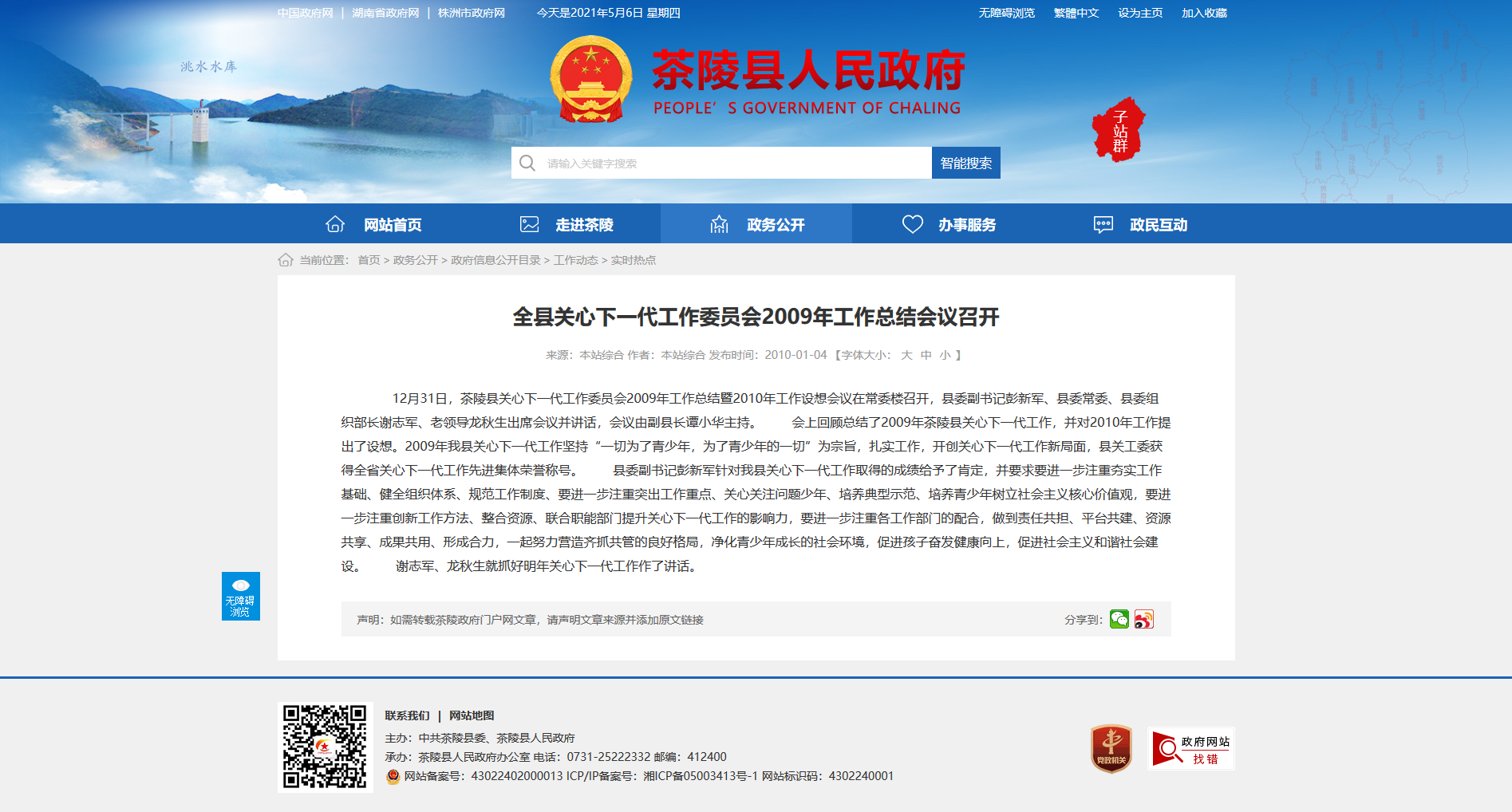 12月31日,茶陵县关心下一代工作委员会2009年工作总结暨2010年工作设想会议在常委楼召开,县委副书记彭新军、县委常委、县委组织部长谢志军、老领导龙秋生出席会议并讲话,会议由副县长谭小华主持。 会上回顾总结了2009年茶陵县关心下一代工作,并对2010年工作提出了设想。2009年我县关心下一代工作坚持“一切为了青少年,为了青少年的一切”为宗旨,扎实工作,开创关心下一代工作新局面,县关工委获得全省关心下一代工作先进集体荣誉称号。 县委副书记彭新军针对我县关心下一代工作取得的成绩给予了肯定,并要求要进一步注重夯实工作基础、健全组织体系、规范工作制度、要进一步注重突出工作重点、关心关注问题少年、培养典型示范、培养青少年树立社会主义核心价值观,要进一步注重创新工作方法、整合资源、联合职能部门提升关心下一代工作的影响力,要进一步注重各工作部门的配合,做到责任共担、平台共建、资源共享、成果共用、形成合力,一起努力营造齐抓共管的良好格局,净化青少年成长的社会环境,促进孩子奋发健康向上,促进社会主义和谐社会建设。 谢志军、龙秋生就抓好明年关心下一代工作作了讲话。