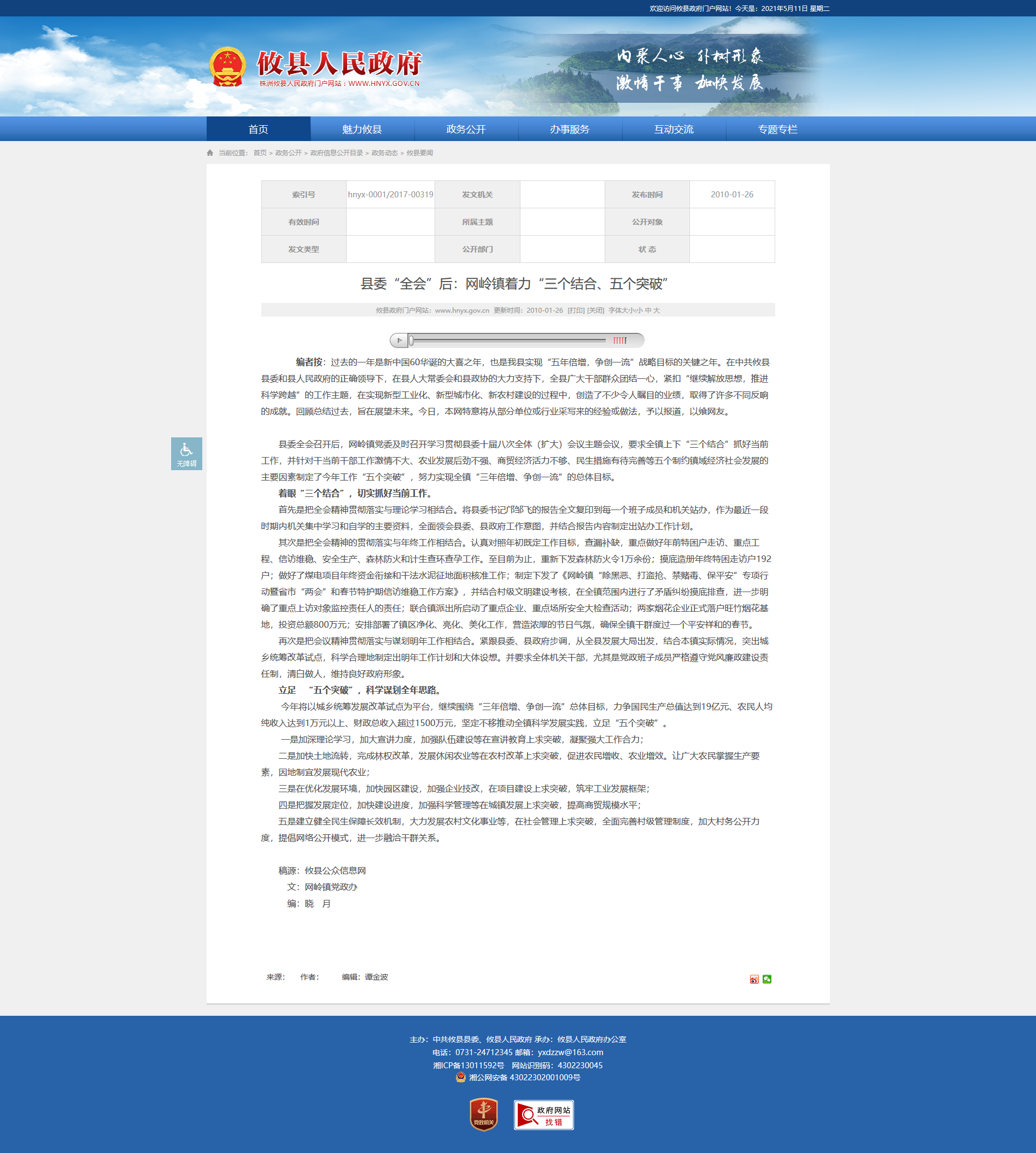 县委全会召开后,网岭镇党委及时召开学习贯彻县委十届八次全体(扩大)会议主题会议,要求全镇上下“三个结合”抓好当前工作,并针对干当前干部工作激情不大、农业发展后劲不强、商贸经济活力不够、民生措施有待完善等五个制约镇域经济社会发展的主要因素制定了今年工作“五个突破”,努力实现全镇“三年倍增、争创一流”的总体目标。
