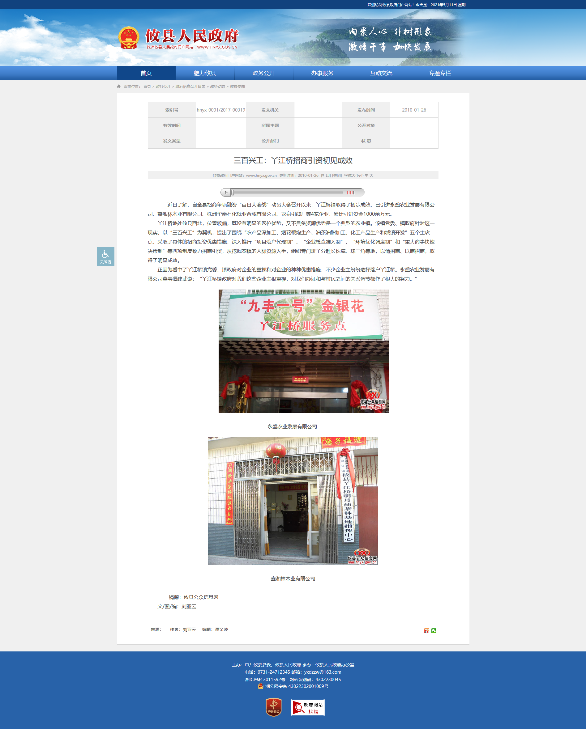 丫江桥地处攸县西北,位置较偏,既没有明显的区位优势,又不具备资源优势是一个典型的农业镇。该镇党委、镇政府针对这一现实,以“三百兴工”为契机,提出了围绕“农产品深加工、烟花鞭炮生产、油茶油脂加工、化工产品生产和城镇开发”五个主攻点,采取了具体的招商投资优惠措施,深入推行“项目落户代理制”、“企业检查准入制”、“环境优化调度制”和“重大商事快速决策制”等四项制度致力招商引资,从挖掘本镇的人脉资源入手,组织专门班子分赴长株潭、珠三角等地,以情招商、以商招商,取得了明显成效。