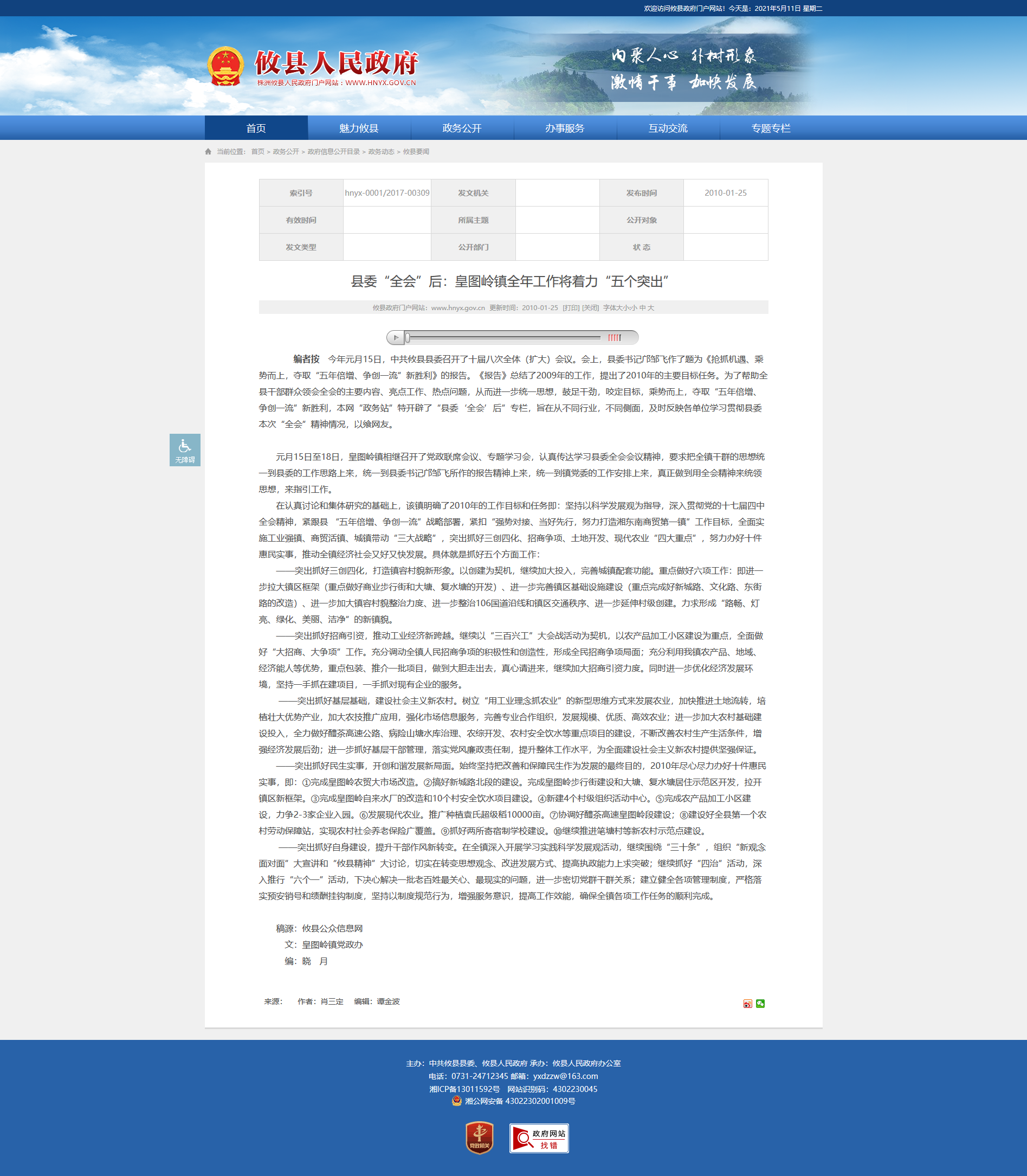 ——突出抓好民生实事,开创和谐发展新局面。始终坚持把改善和保障民生作为发展的最终目的,2010年尽心尽力办好十件惠民实事,即:①完成皇图岭农贸大市场改造。②搞好新城路北段的建设。完成皇图岭步行街建设和大塘、复水塘居住示范区开发,拉开镇区新框架。③完成皇图岭自来水厂的改造和10个村安全饮水项目建设。④新建4个村级组织活动中心。⑤完成农产品加工小区建设,力争2-3家企业入园。⑥发展现代农业。推广种植袁氏超级稻10000亩。⑦协调好醴茶高速皇图岭段建设;⑧建设好全县第一个农村劳动保障站,实现农村社会养老保险广覆盖。⑨抓好两所寄宿制学校建设。⑩继续推进笔塘村等新农村示范点建设。