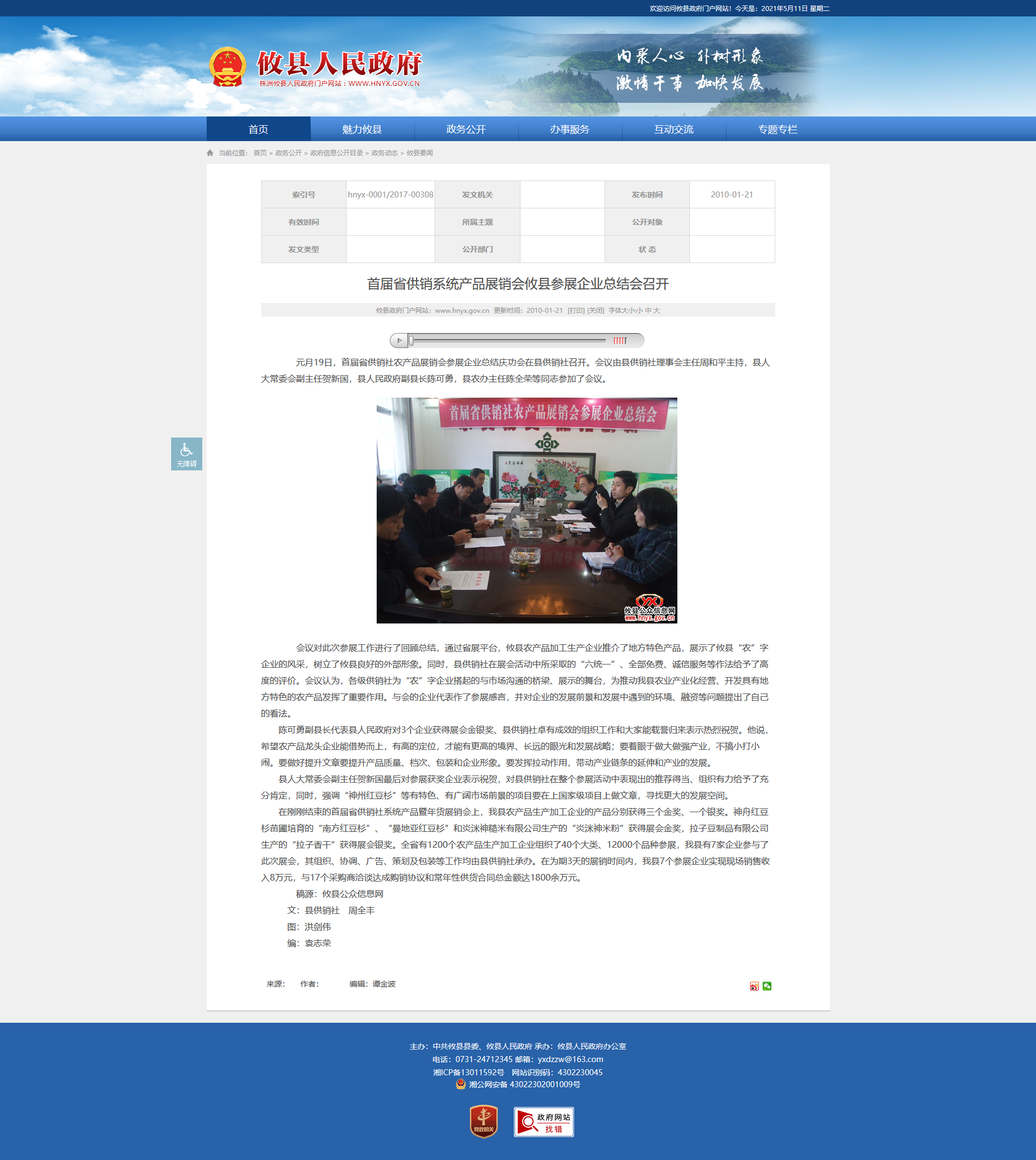 元月19日,首届省供销社农产品展销会参展企业总结庆功会在县供销社召开。会议由县供销社理事会主任周和平主持,县人大常委会副主任贺新国,县人民政府副县长陈可勇,县农办主任陈全荣等同志参加了会议。
