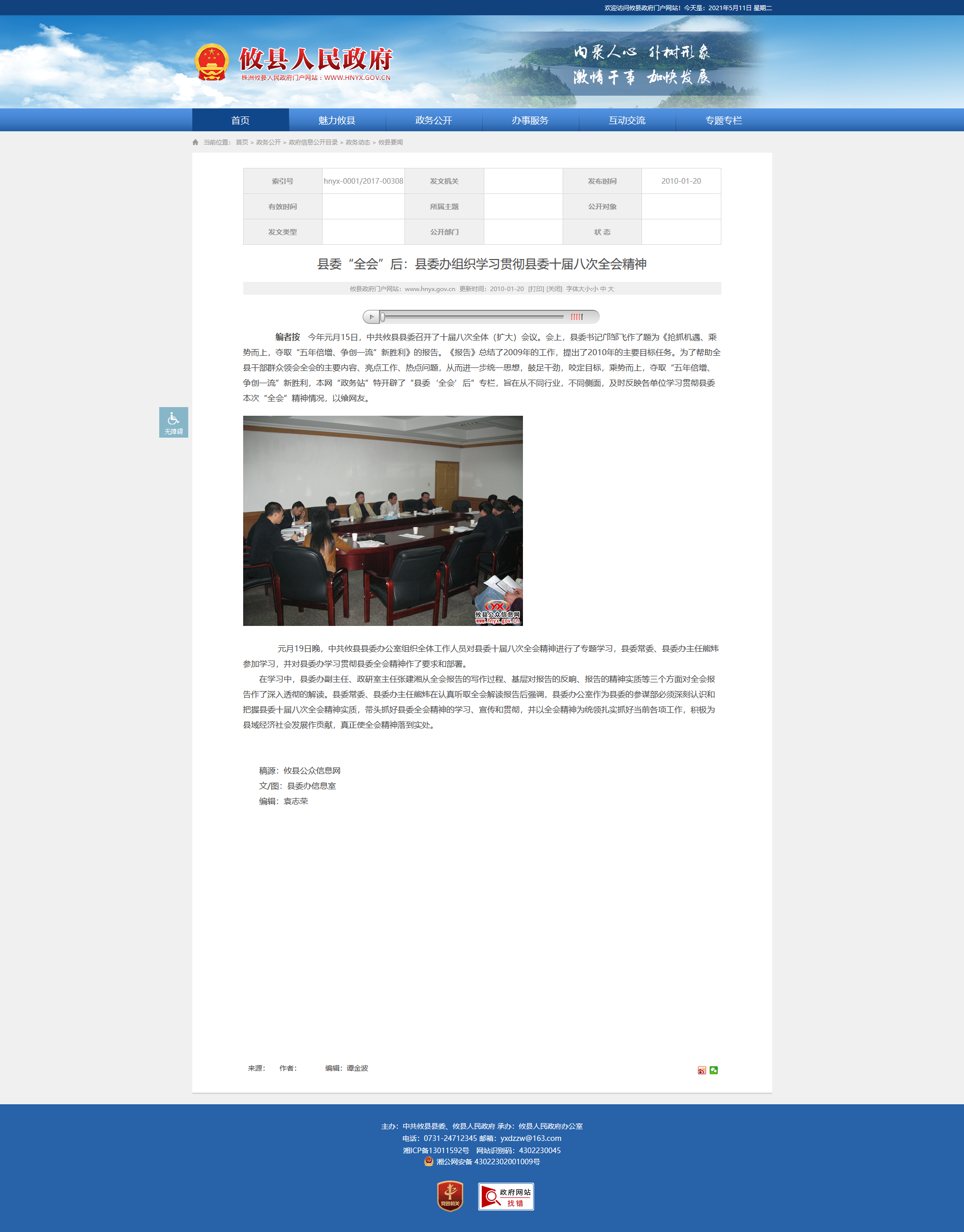 编者按 今年元月15日,中共攸县县委召开了十届八次全体(扩大)会议。会上,县委书记邝邹飞作了题为《抢抓机遇、乘势而上,夺取“五年倍增、争创一流”新胜利》的报告。《报告》总结了2009年的工作,提出了2010年的主要目标任务。为了帮助全县干部群众领会全会的主要内容、亮点工作、热点问题,从而进一步统一思想,鼓足干劲,咬定目标,乘势而上,夺取“五年倍增、争创一流”新胜利,本网“政务站”特开辟了“县委‘全会’后”专栏,旨在从不同行业,不同侧面,及时反映各单位学习贯彻县委本次“全会”精神情况,以飨网友。