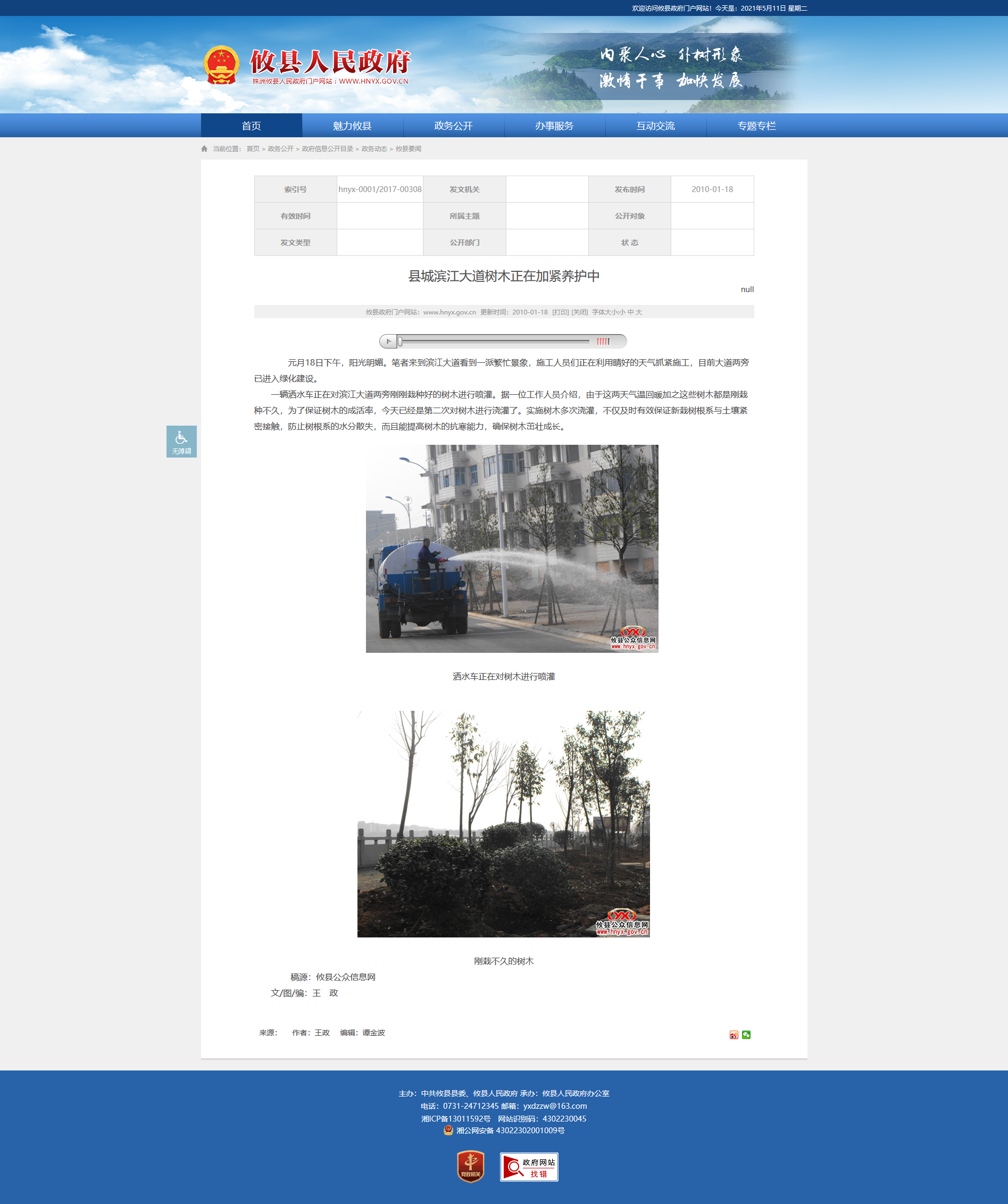 一辆洒水车正在对滨江大道两旁刚刚栽种好的树木进行喷灌。据一位工作人员介绍,由于这两天气温回暖加之这些树木都是刚栽种不久,为了保证树木的成活率,今天已经是第二次对树木进行浇灌了。实施树木多次浇灌,不仅及时有效保证新栽树根系与土壤紧密接触,防止树根系的水分散失,而且能提高树木的抗寒能力,确保树木茁壮成长。