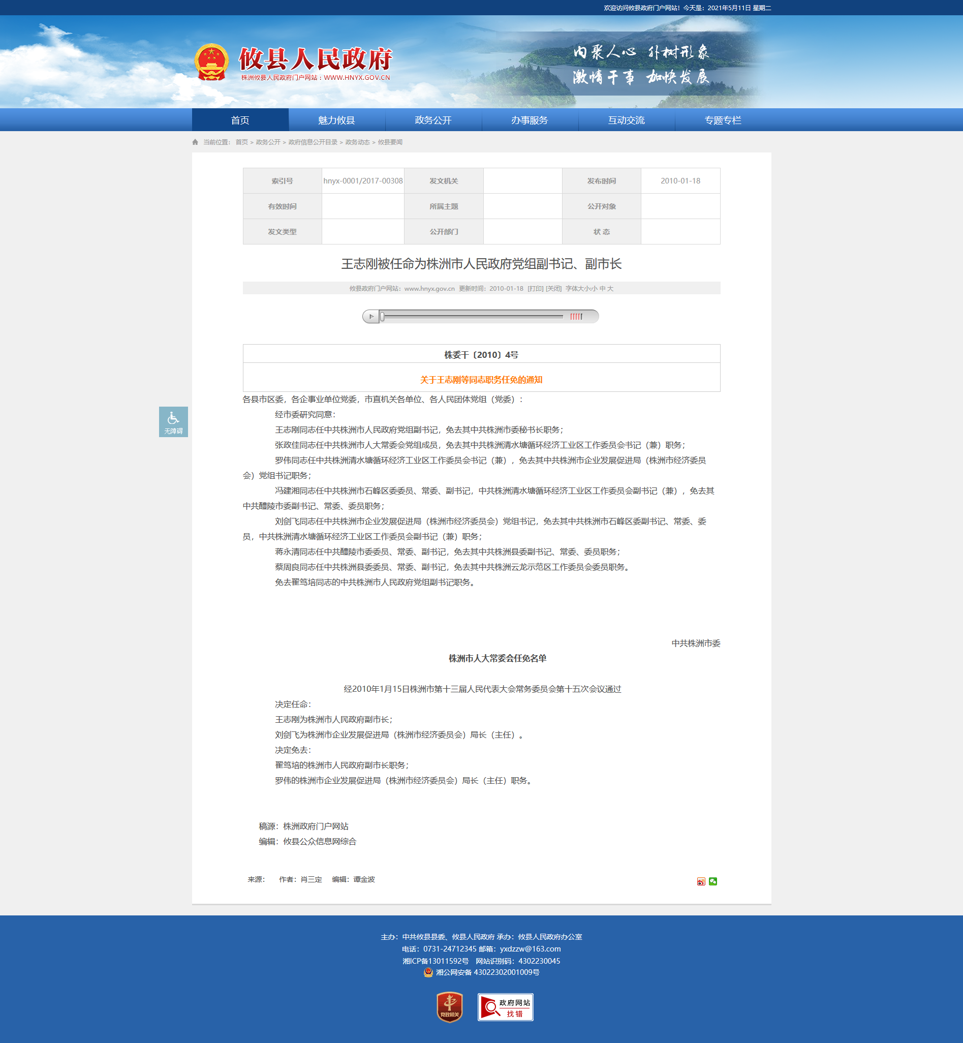 王志刚同志任中共株洲市人民政府党组副书记,免去其中共株洲市委秘书长职务;