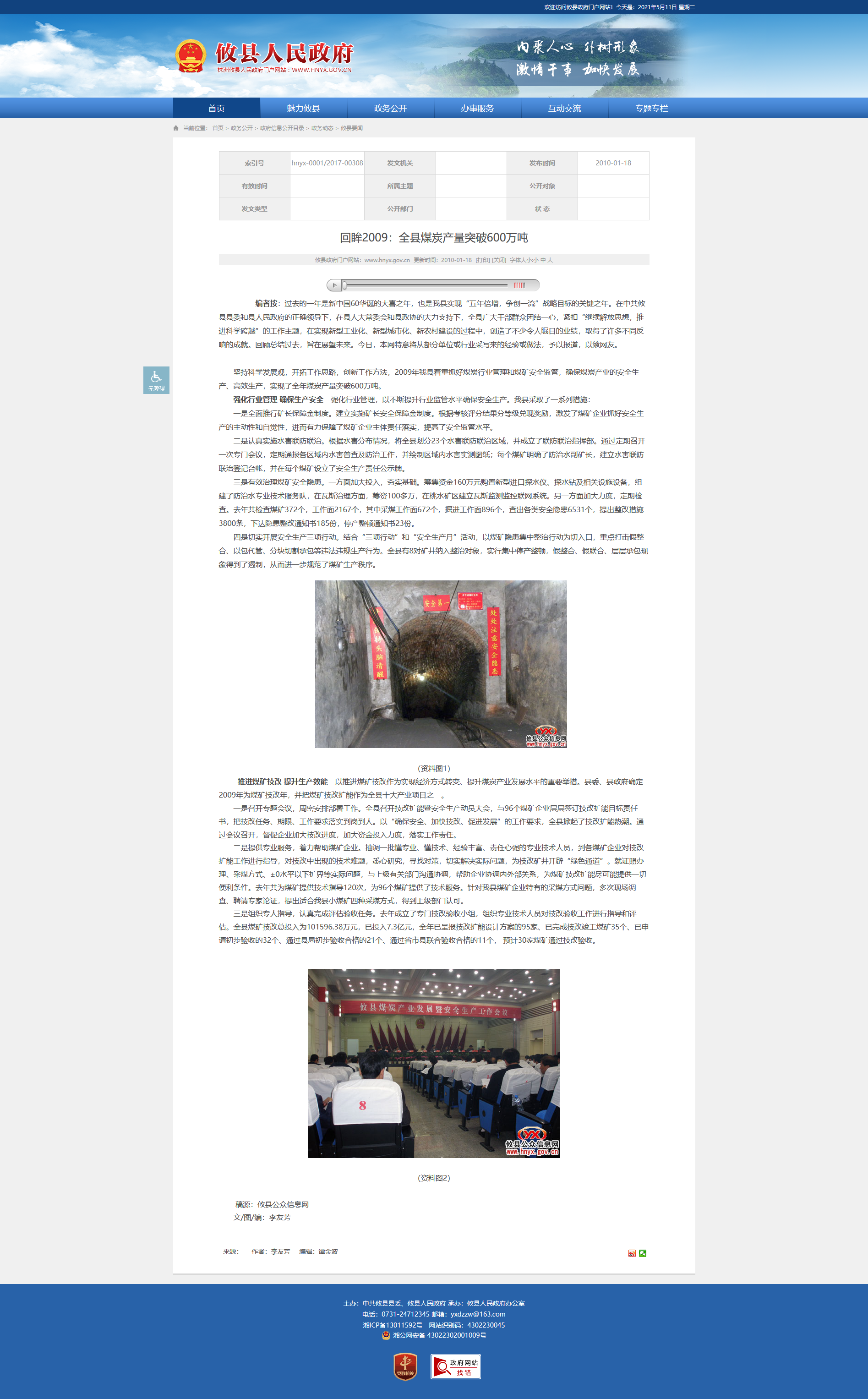 坚持科学发展观,开拓工作思路,创新工作方法,2009年我县着重抓好煤炭行业管理和煤矿安全监管,确保煤炭产业的安全生产、高效生产,实现了全年煤炭产量突破600万吨。