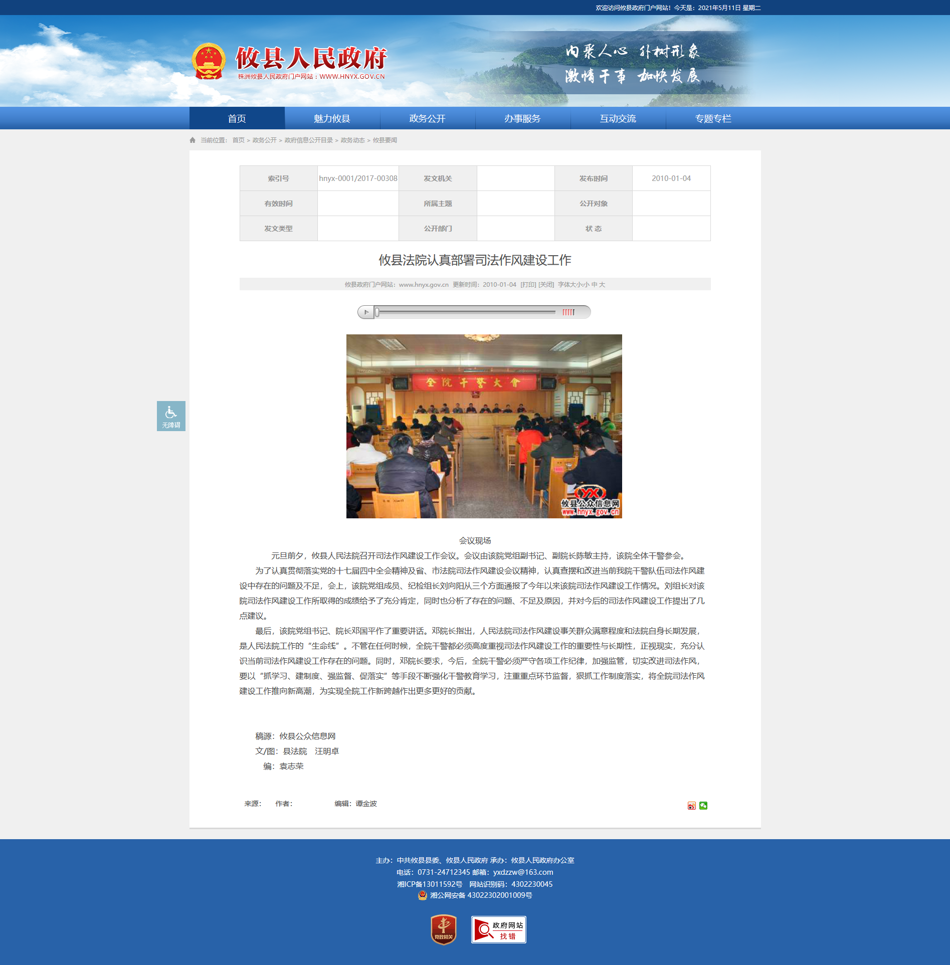 元旦前夕,攸县人民法院召开司法作风建设工作会议。会议由该院党组副书记、副院长陈敏主持,该院全体干警参会。