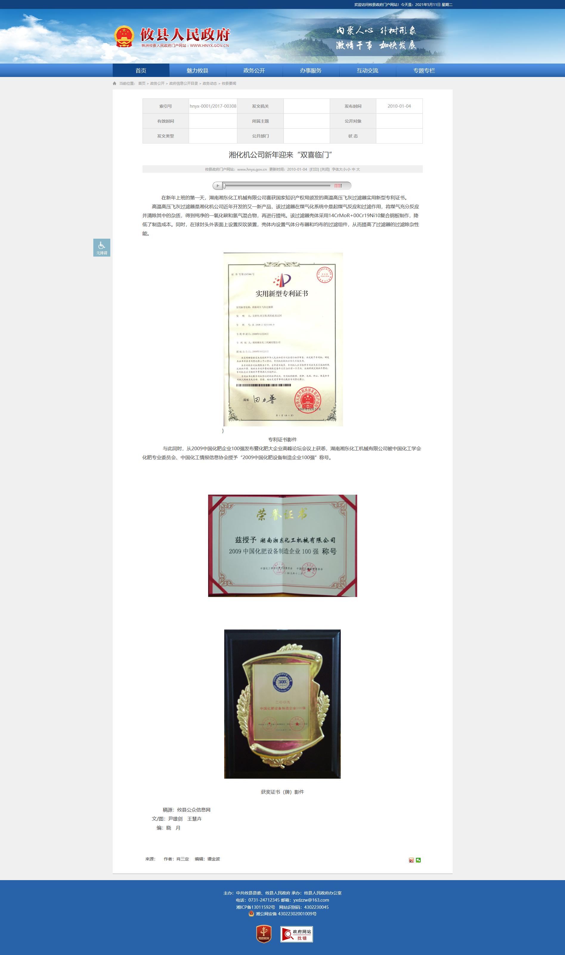 与此同时,从2009中国化肥企业100强发布暨化肥大企业高峰论坛会议上获悉,湖南湘东化工机械有限公司被中国化工学会化肥专业委员会、中国化工情报信息协会授予“2009中国化肥设备制造企业100强”称号。