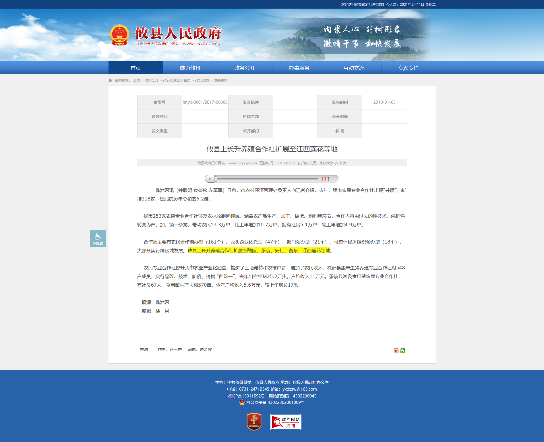 合作社主要有农民合作创办型(161个)、龙头企业依托型(47个)、部门领办型(21个)、村集体经济组织领办型(18个),大部分实行跨区域发展。攸县上长升养殖合作社扩展至醴陵、茶陵、安仁、衡东、江西莲花等地。