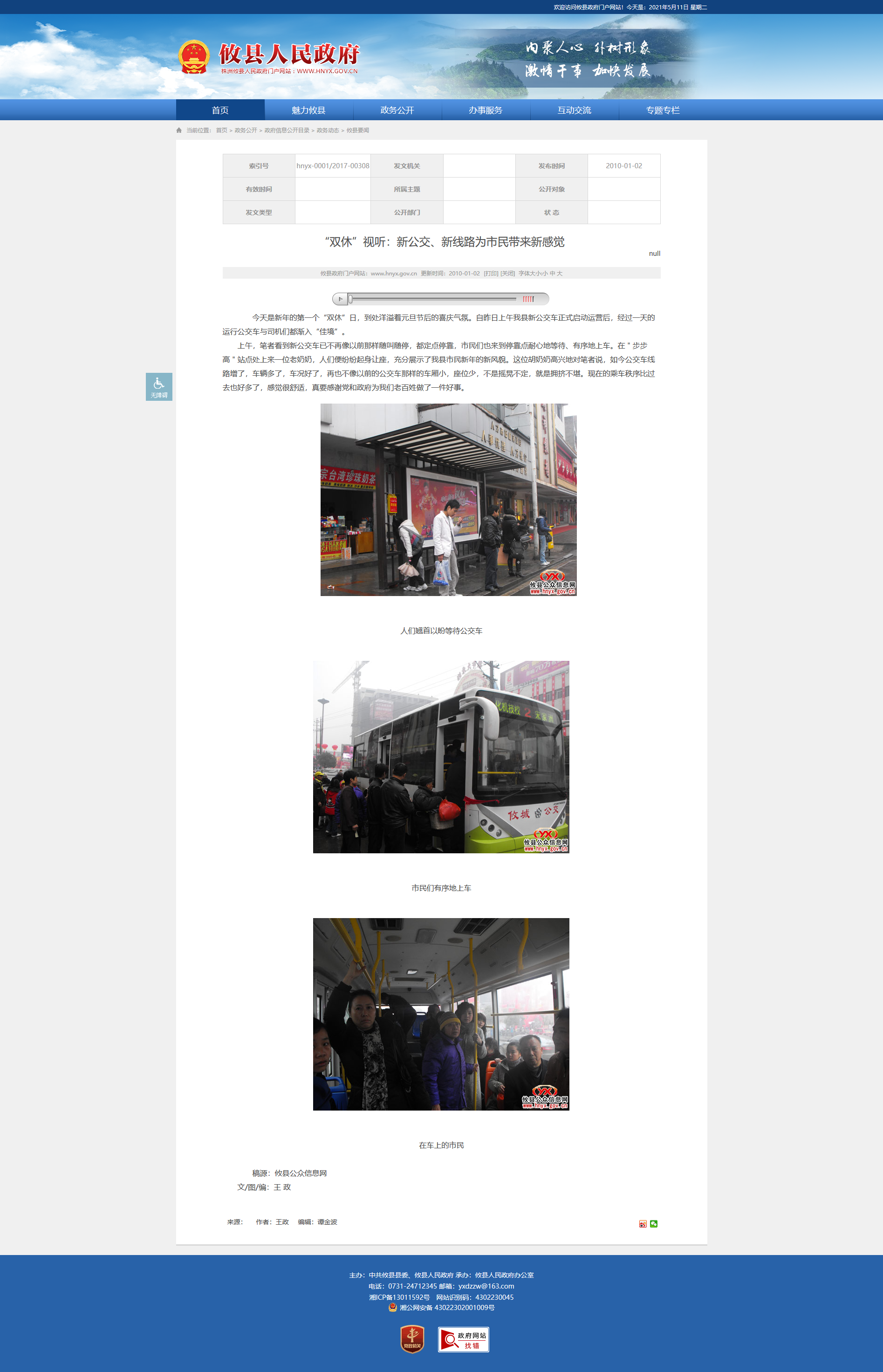 上午,笔者看到新公交车已不再像以前那样随叫随停,都定点停靠,市民们也来到停靠点耐心地等待、有序地上车。在"步步高"站点处上来一位老奶奶,人们便纷纷起身让座,充分展示了我县市民新年的新风貌。这位胡奶奶高兴地对笔者说,如今公交车线路增了,车辆多了,车况好了,再也不像以前的公交车那样的车厢小,座位少,不是摇晃不定,就是拥挤不堪。现在的乘车秩序比过去也好多了,感觉很舒适,真要感谢党和政府为我们老百姓做了一件好事。