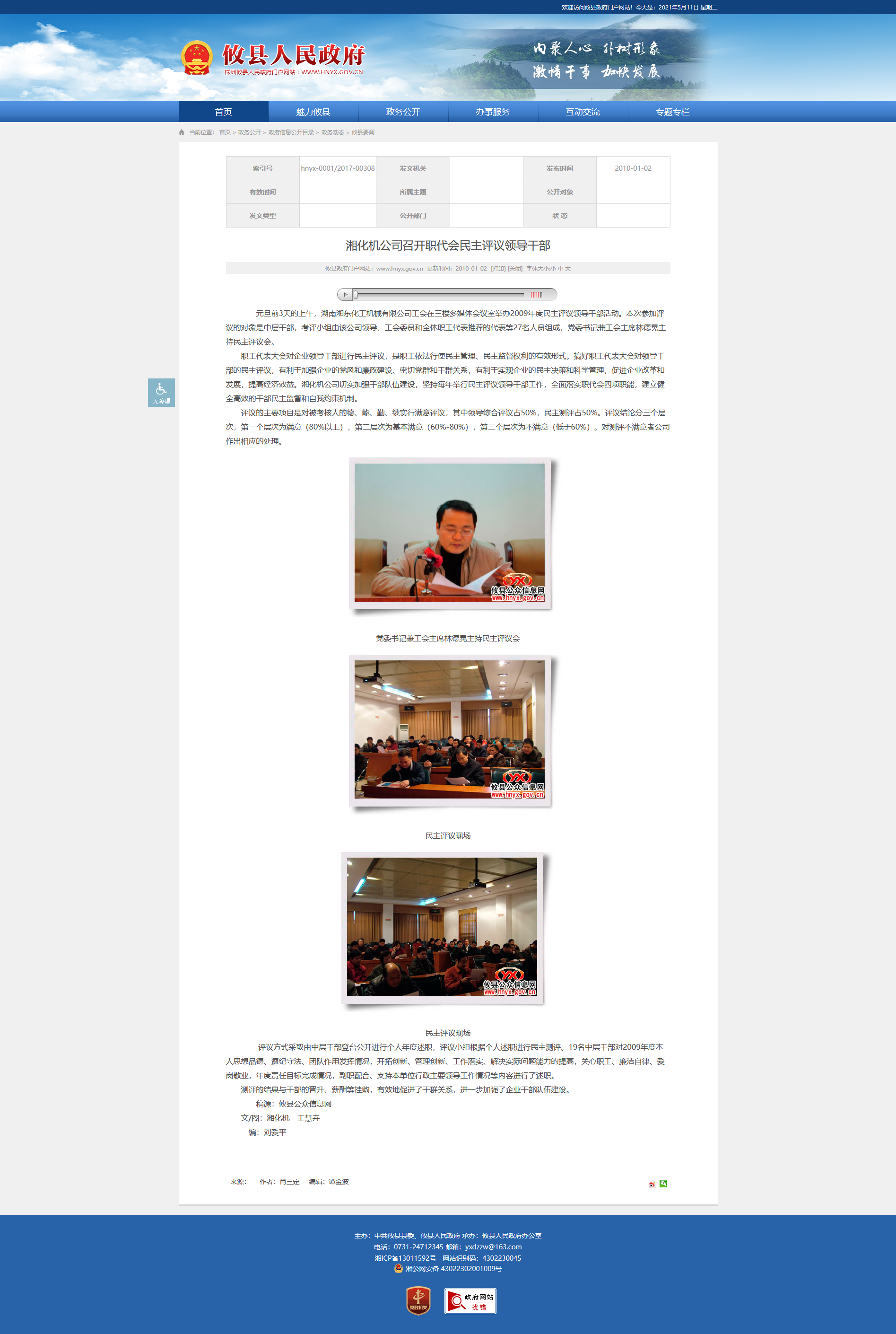 元旦前3天的上午,湖南湘东化工机械有限公司工会在三楼多媒体会议室举办2009年度民主评议领导干部活动。本次参加评议的对象是中层干部,考评小组由该公司领导、工会委员和全体职工代表推荐的代表等27名人员组成,党委书记兼工会主席林德晃主持民主评议会。