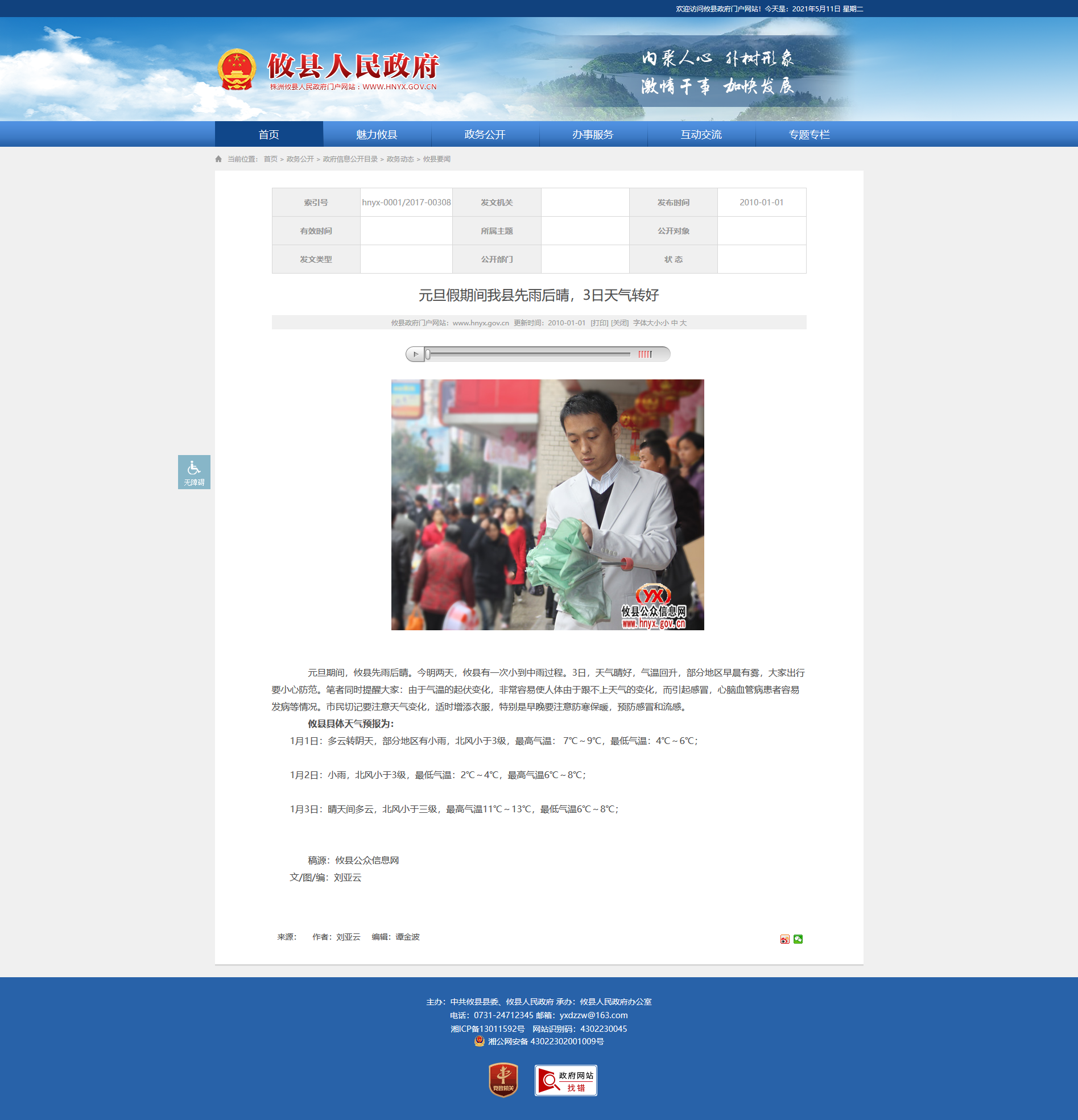 元旦期间,攸县先雨后晴。今明两天,攸县有一次小到中雨过程。3日,天气晴好,气温回升,部分地区早晨有雾,大家出行要小心防范。笔者同时提醒大家:由于气温的起伏变化,非常容易使人体由于跟不上天气的变化,而引起感冒,心脑血管病患者容易发病等情况。市民切记要注意天气变化,适时增添衣服,特别是早晚要注意防寒保暖,预防感冒和流感。