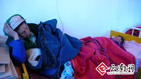 村卫生所里正在接受冶疗的伤员。